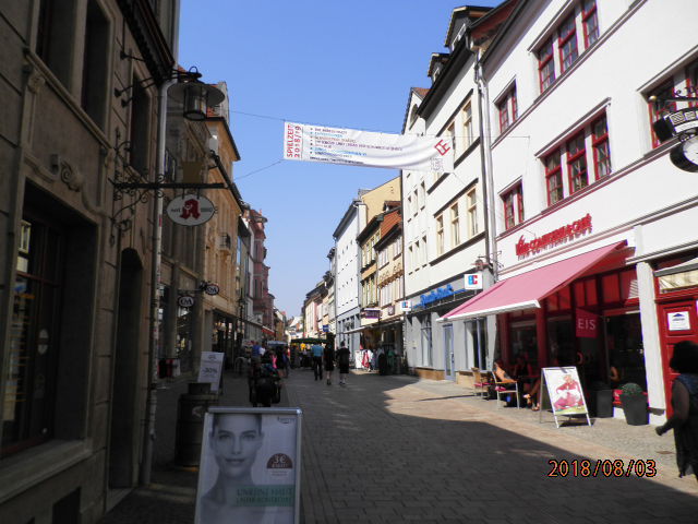 ニコライ塔をくぐり、ルター像のたつカールス広場から、マルクト広場へと続く歩行者専用の道です。道の両側には、カフェやレストラン、お土産ものやファッション関係など、いろいろな種類の店が並ぶアイゼナハのメインストリートです。