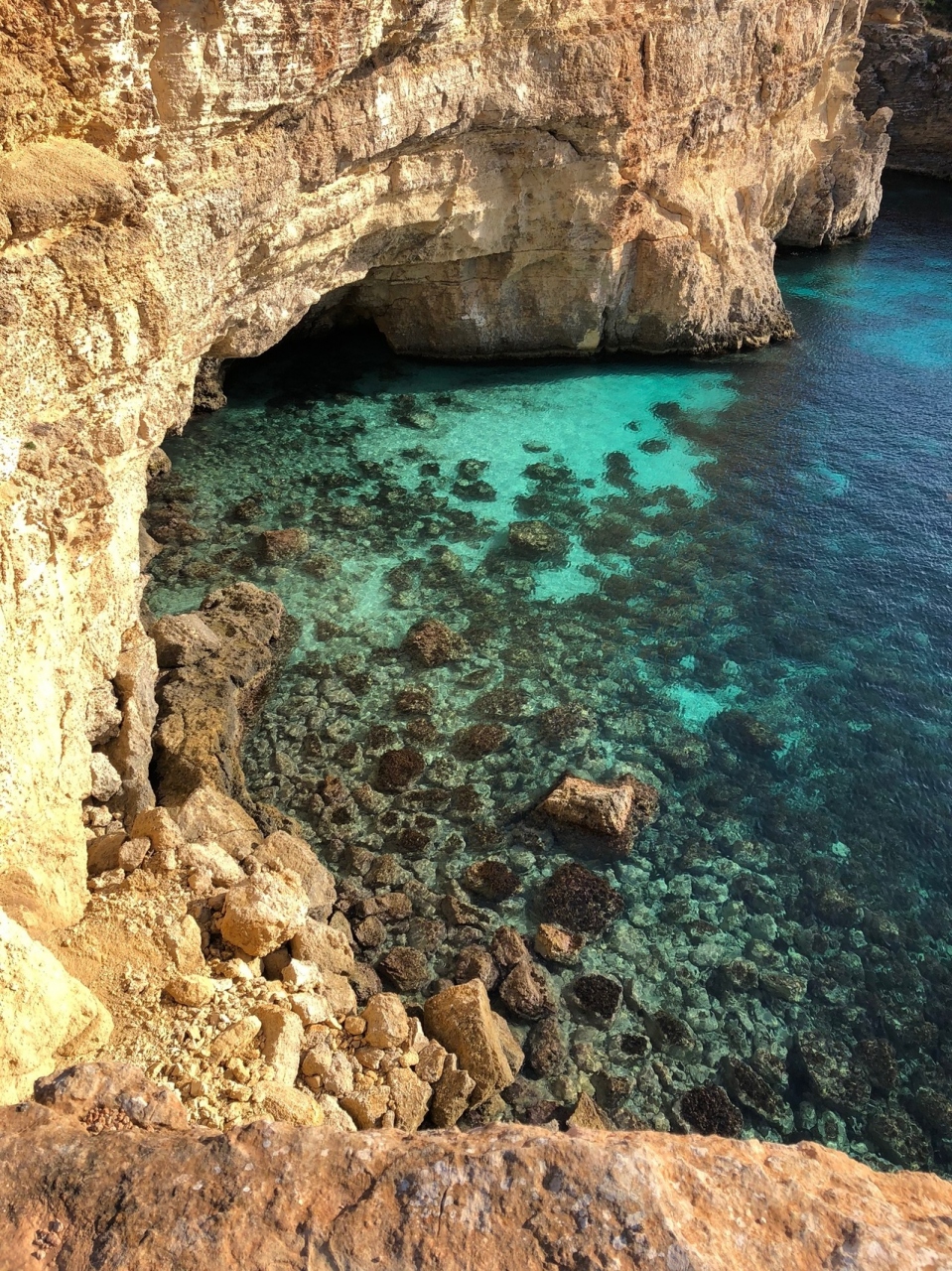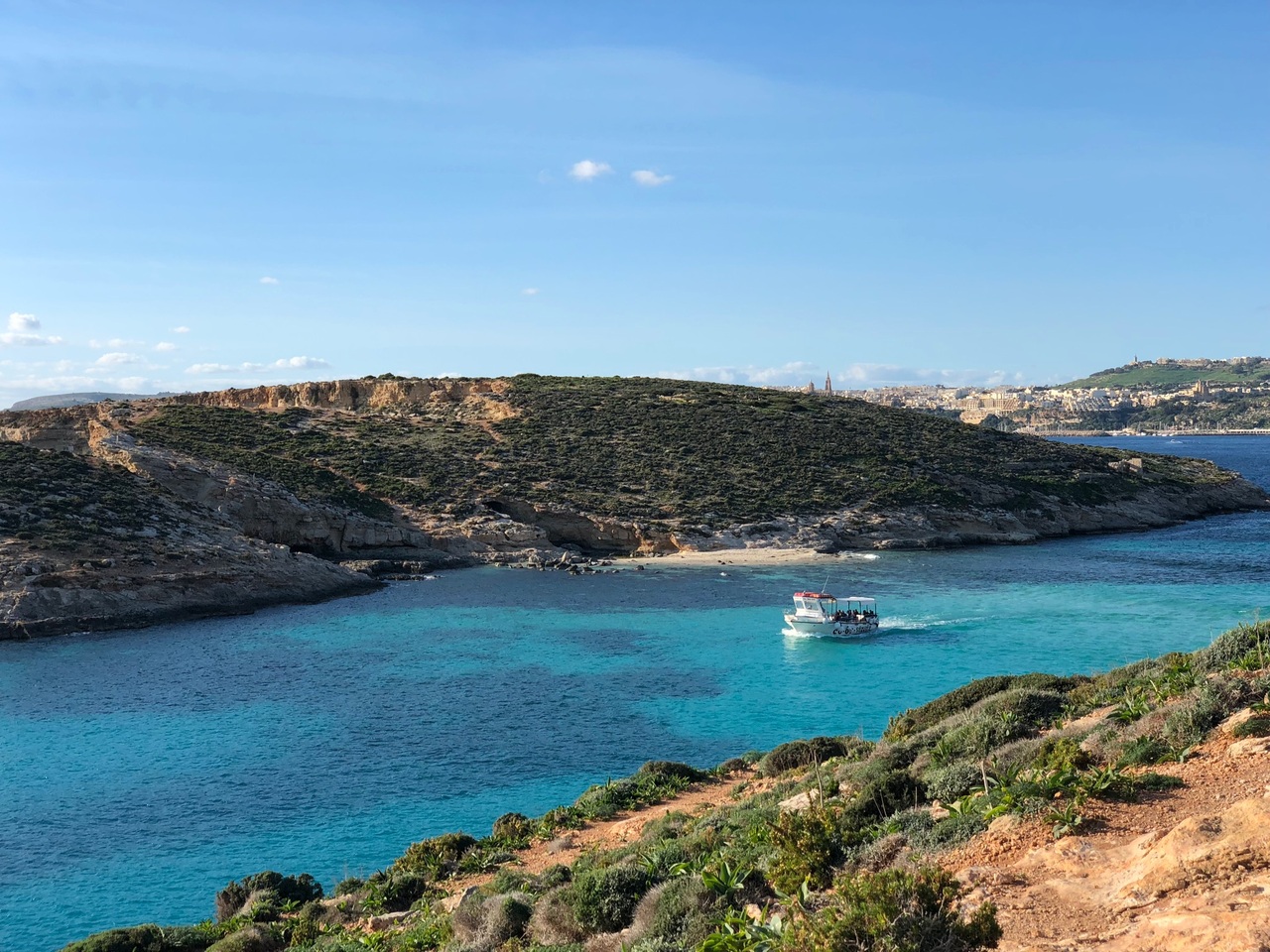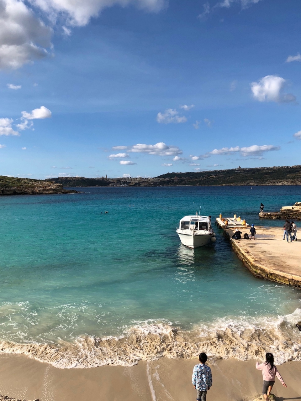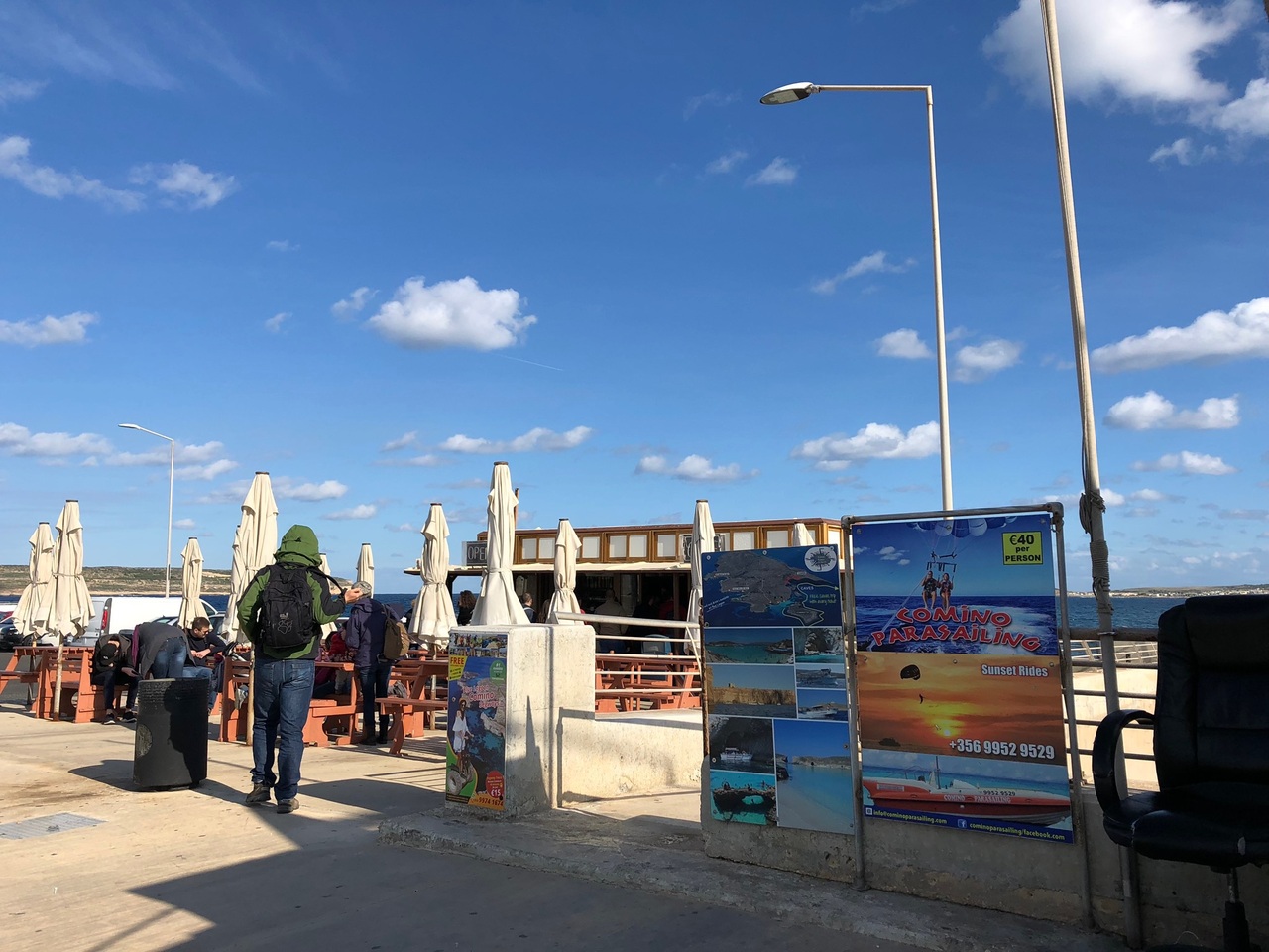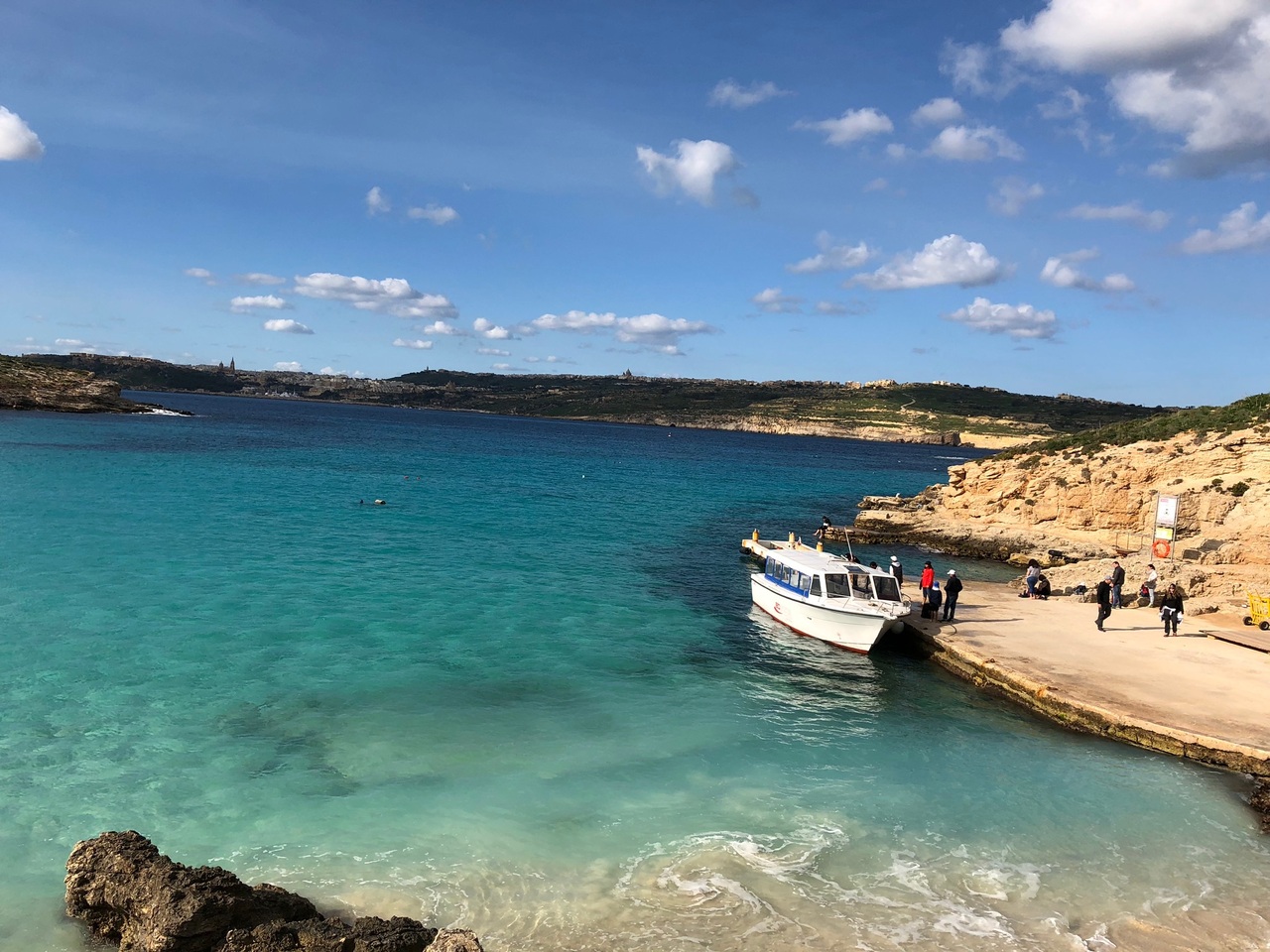 ゴゾに行くのとは乗り場が違い、小さなスタンドで申し込みます。時間になったら呼ばれ、20人乗りくらいの小さな船に乗って向かいます。10分くらいで着くのでとても近いです。船は、コミノ島の周りのきれいな海を魅せながら連れて行ってくれます。