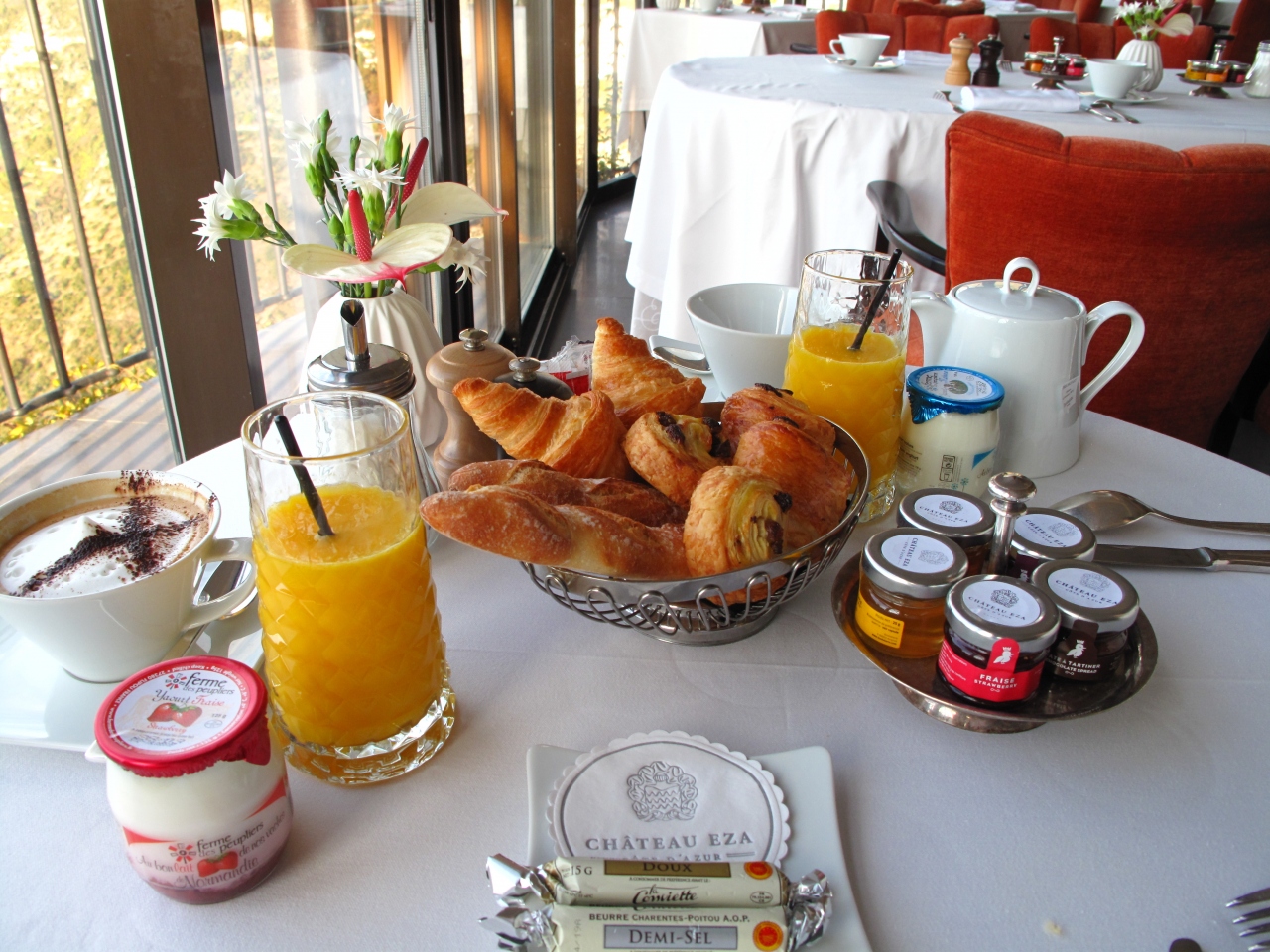 シャトー・エザのレストランは1月から3月の月曜、火曜はクローズです。その日はルームサービスもスモークサーモンなどの冷たい料理しかありません。