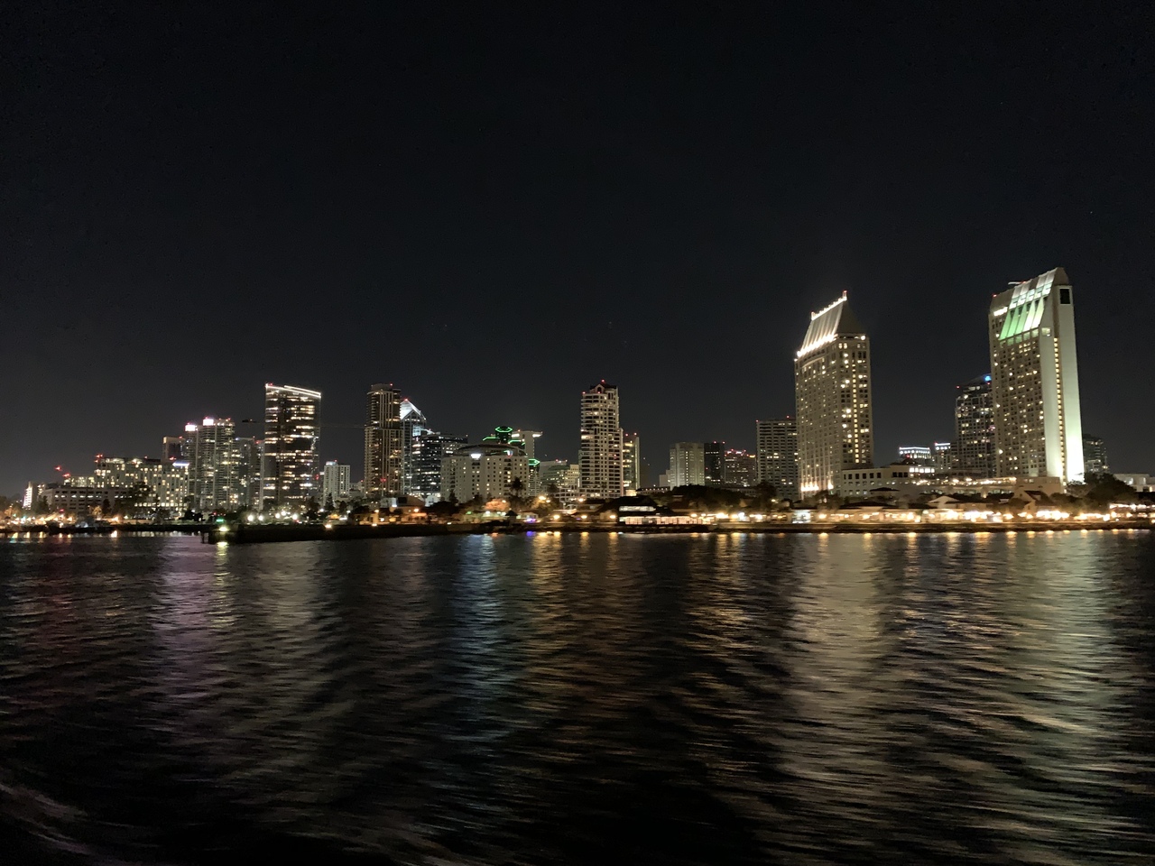 コロナドとブロードウエイピア間を15分で結ぶフェリーで、片道5ドルとお安くなっています。ブロードウエイピアを朝9時から夜10時(金土のみ)まで1時間ごとに出発します。コロナド側からは30分発になります。フェリー自体はしょぼいものですが、サンディエゴの夜景鑑賞にはもってこいです。夜の9時発に乗りましたが、チケット売り場は既に閉まっており、乗り込んでから船内で購入するスタイルでした。