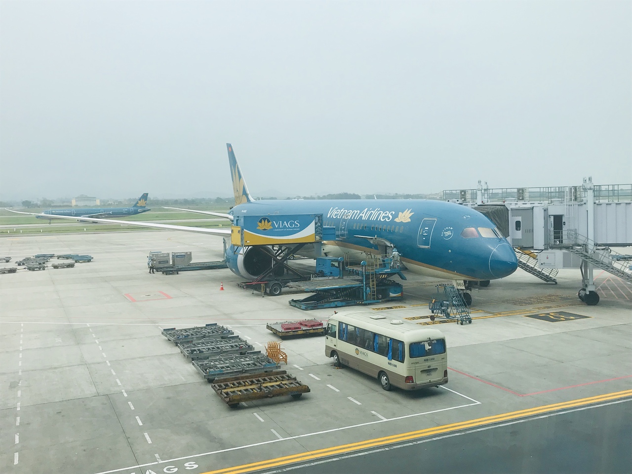 比較的コンパクトな空港でわかりやすいが、ゲートまでエスカレーターがないため端の方のゲートだと結構歩きました。お化粧品などの免税店もありますが、特段お安いわけでもないので、買わず。フラッグエアラインのベトナム航空が並んでいました。