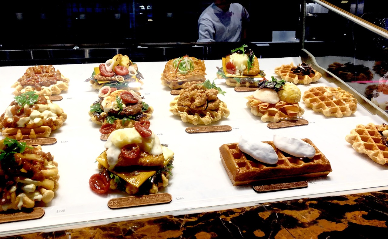 お店の中はワッフルを作る様子が見れたり、ケーキやアイスのディスプレイがあったり並ぶ人たちを飽きさせない工夫がされてます。