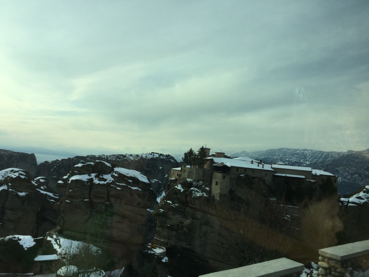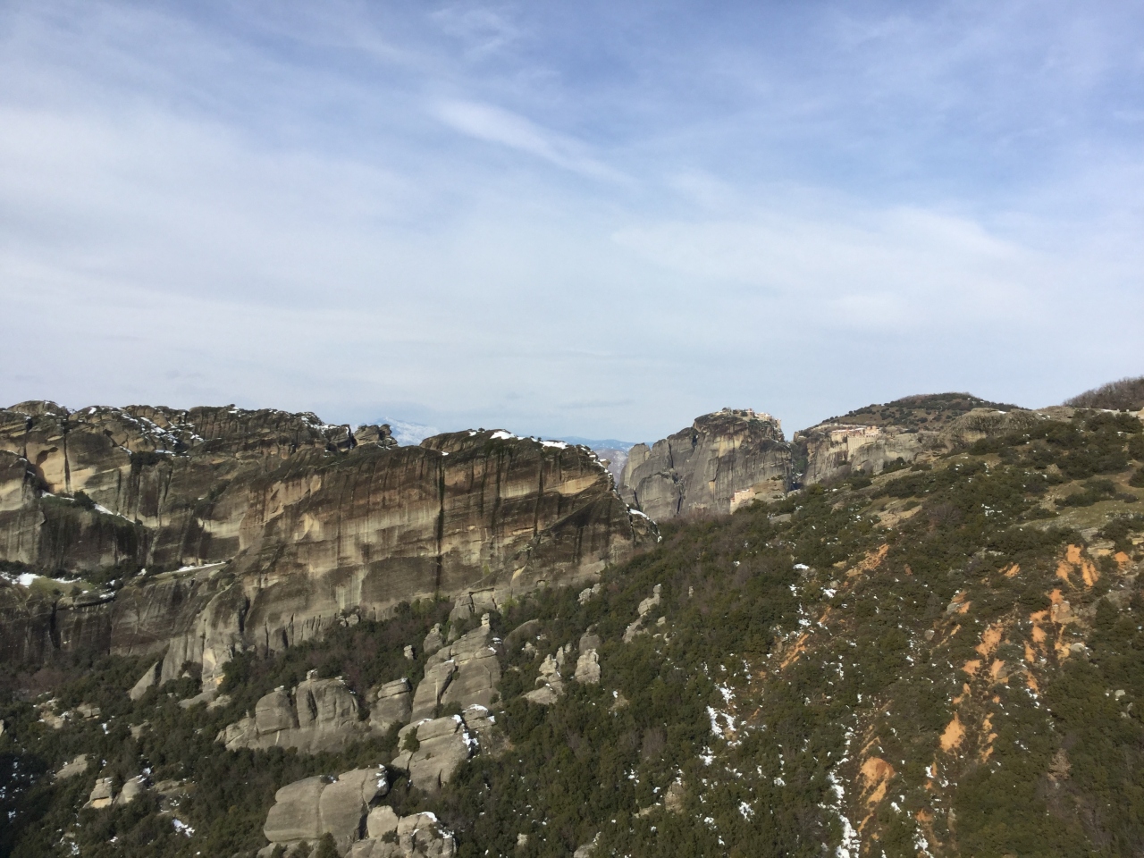 メテオラの修道院は高さ600m前後の崖の上に6つほどあります。