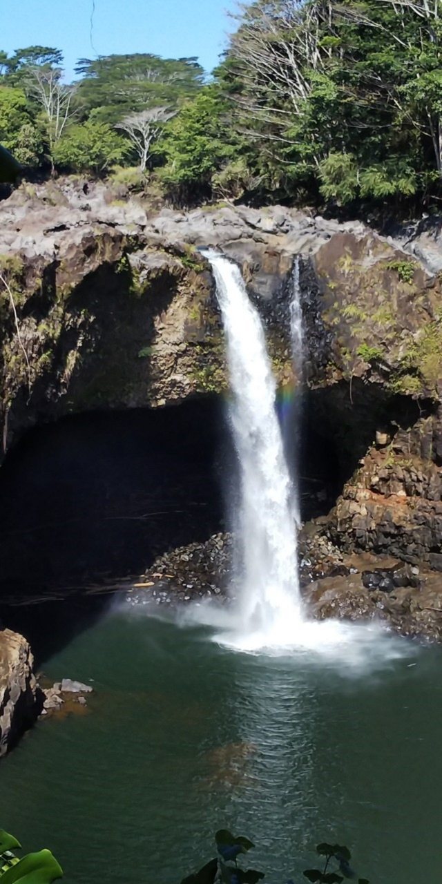 レインボーフォールズの滝は晴れた日の午前中に行くと見える確率か高いと聞いて、早起きして向かいました。ヒロは雨の多い町ですか、この日は、晴天に恵まれて期待通り虹も見えました。良いことありそうです。