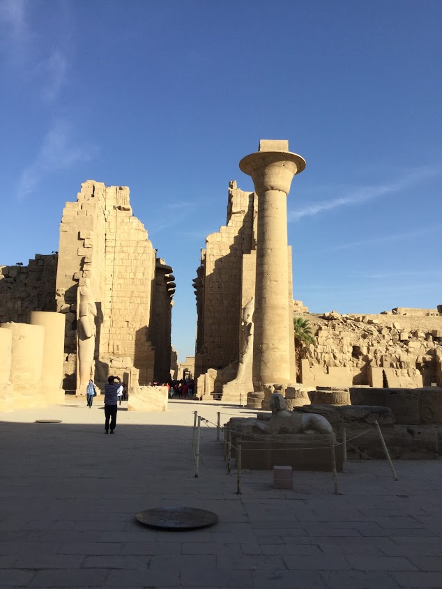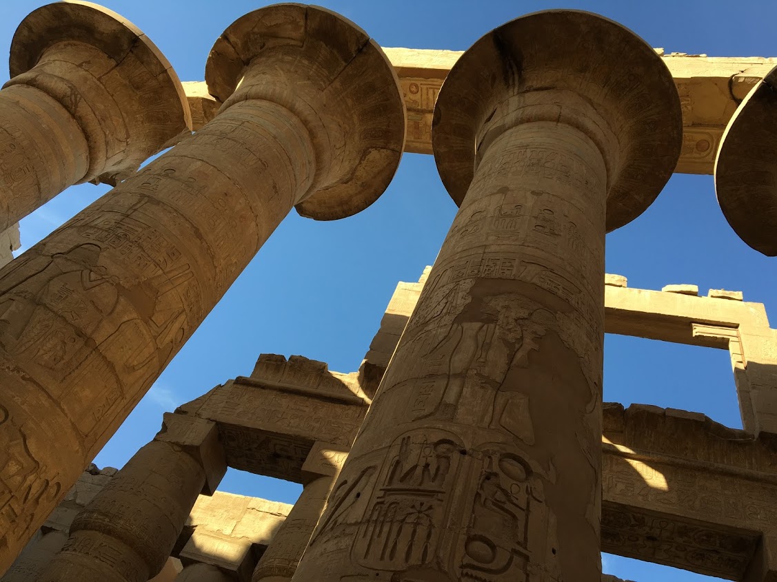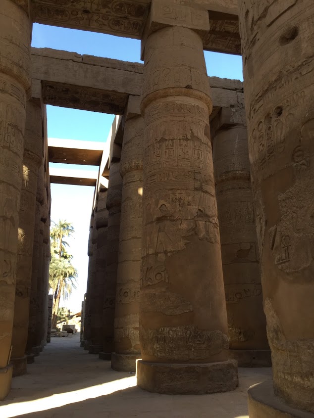 大変大きな支柱が何本も現存しておりその支柱の頭上の太陽の位置や季節ごとの光の変化まで計算しつくされていて、古代エジプトの技術力の高さを改めて感じる場所です。