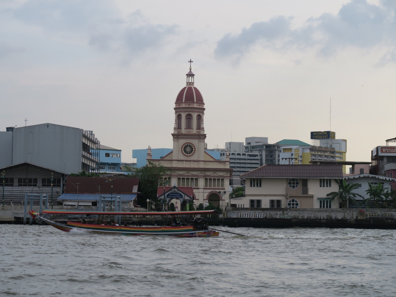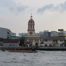チャオプラヤーエクスプレスボートの船上からみた大聖堂。