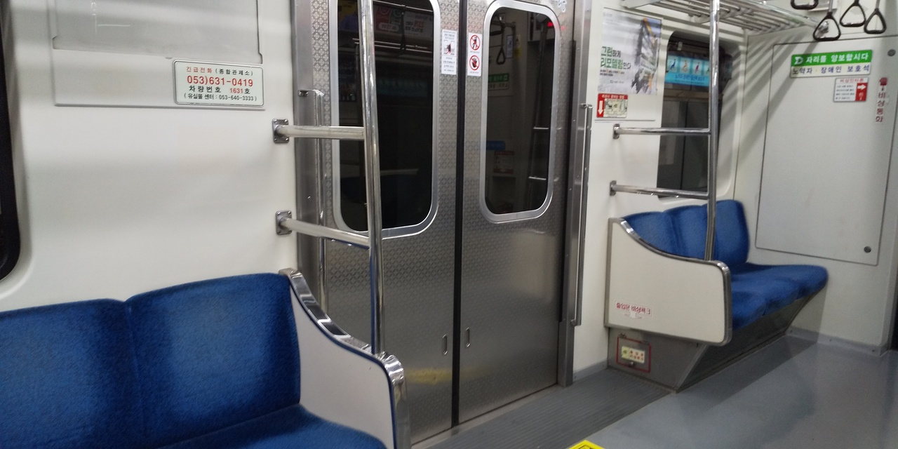 大邱市内を3路線が運行する便利な地下鉄です。路線には色があり、1号線はオレンジ色、2号線は緑色、3号線は黄色です。切符にあたるトークンは、コインの形をしたものです。オセロのコマみたいです。