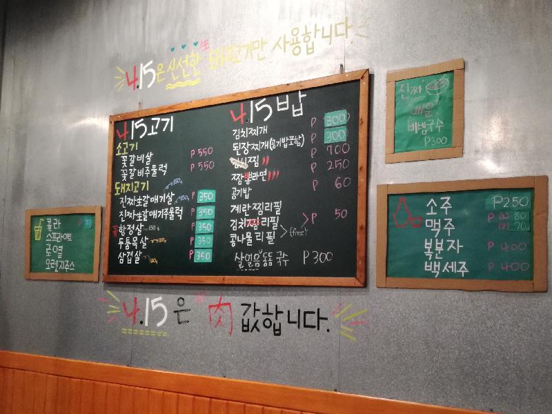 店の客はほとんどがコリアンです。だから、壁のメニューはすべてハングルのみ^^