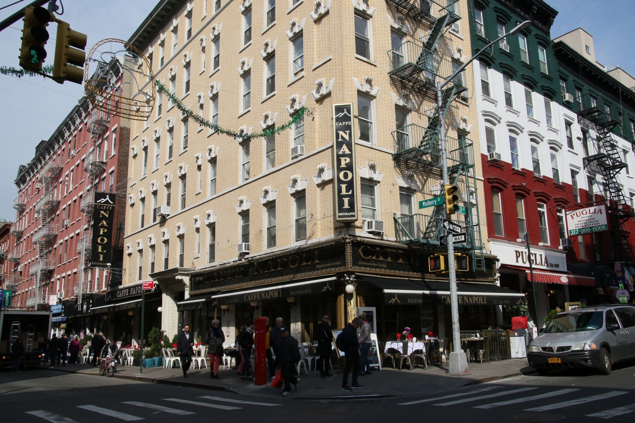 いつでも賑わいの絶えないチャイナタウンに比べ、最近はあまり話題もなく観光客の少ないリトルイタリーですが、外階段が印象的な、昔ながらの「キャストアイアン建築」様式の建物がたくさん残っており、散策するにはとても楽しいです。テラス席のあるレストランが多く、歩き疲れたらお茶するのも良さそうです。
