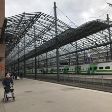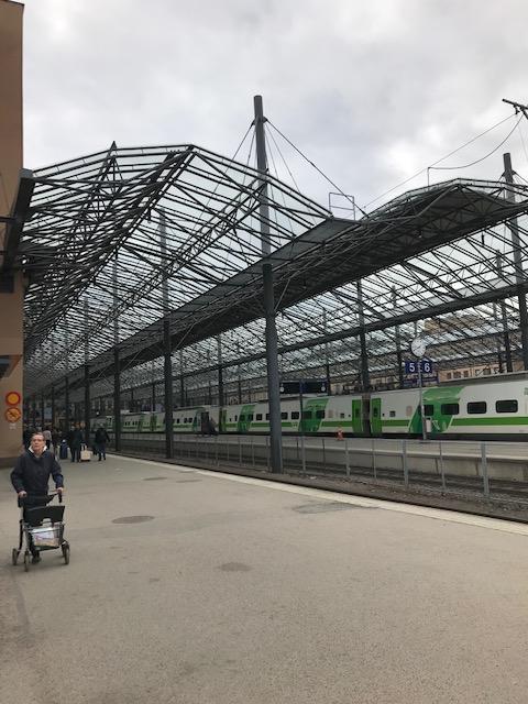 ヘルシンキ空港からリングライン に乗って30分で到着しました。到着した時は、これがヘルシンキ中央駅かと疑うほどでした。しかし構内を進んでいくと、さすがヘルシンキ中央駅というぐらいのものでした。リングライン は新しく出来たので、線路が端にあったのですね。外から見る中央駅の建物はとても立派です。