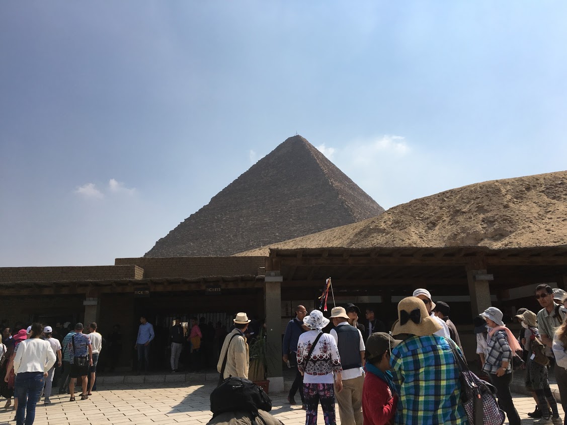ギザの三大ピラミッドの前に行くには入場券を買いセキュリティーを受けます。