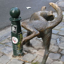 歩道に普通にあり 歩道部分にいるこの像は片足あげてマーキングととてもユーモラス