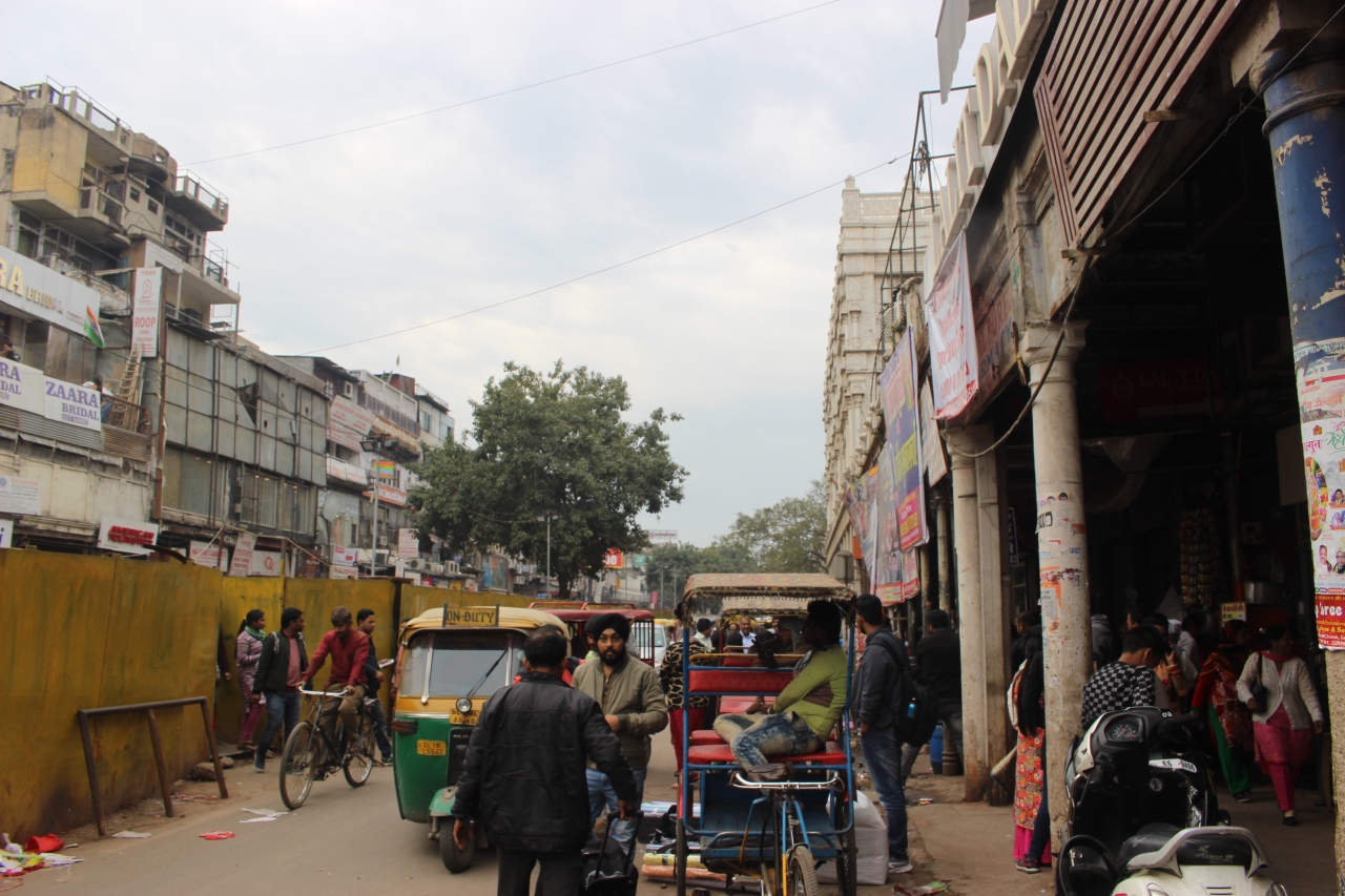 デリー中央駅の周辺にたくさんのお店が並び、たくさんの人で賑わっています。