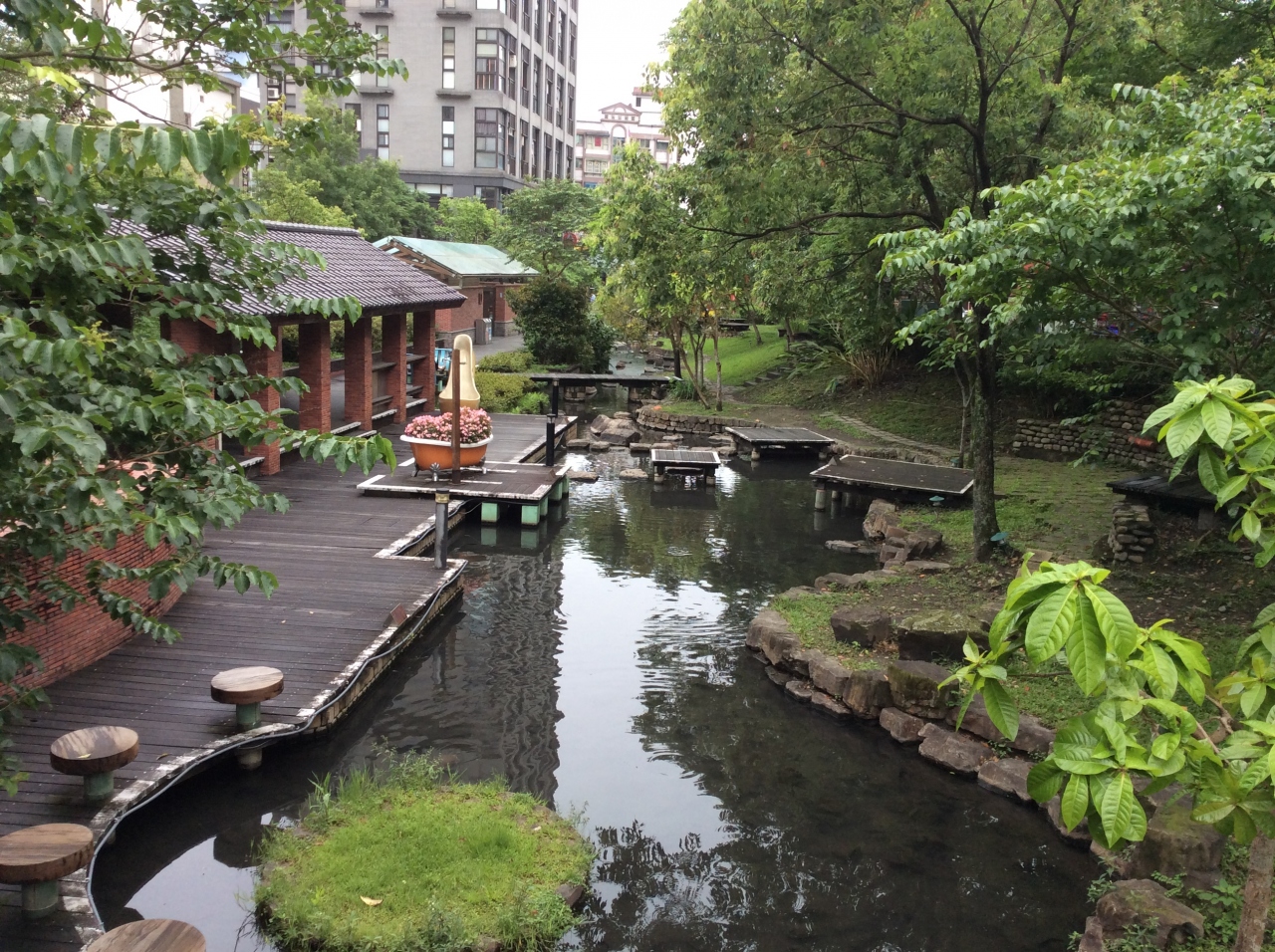 無料の足湯より上流のドクターフィッシュの方が賑わっている
