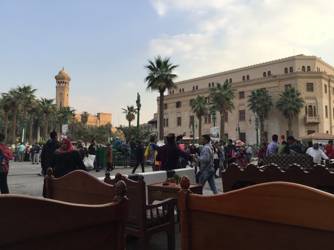 エジプト、カイロのハン・ハリーリ・バザール入り口にあります。ホセイン広場に面しているのでのんびりと人を眺めながら軽食とお茶をする事が出来ます。