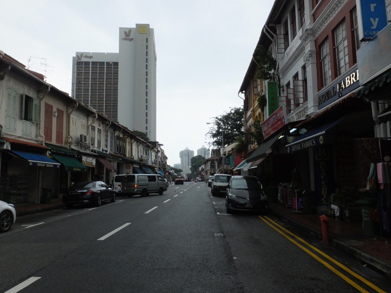アラブ地区の南端あたりを東西に走る通りで、お店の前は全部アーケードになっています。そして所狭しと置かれるインドの服、パンジャビ・ドレスとかサリーとかがいっぱい飾ってあります。よく見ると結構割り引いている(50%引きはザラ)し、けっこう安価だし(10ドルとか)、部屋の飾り用として買って帰りたいくらいでした。でも、これ着れるようなスタイルのいい人ってなかなかいないような。こんな雰囲気を味あわせてくれるエキゾチックな通りです。