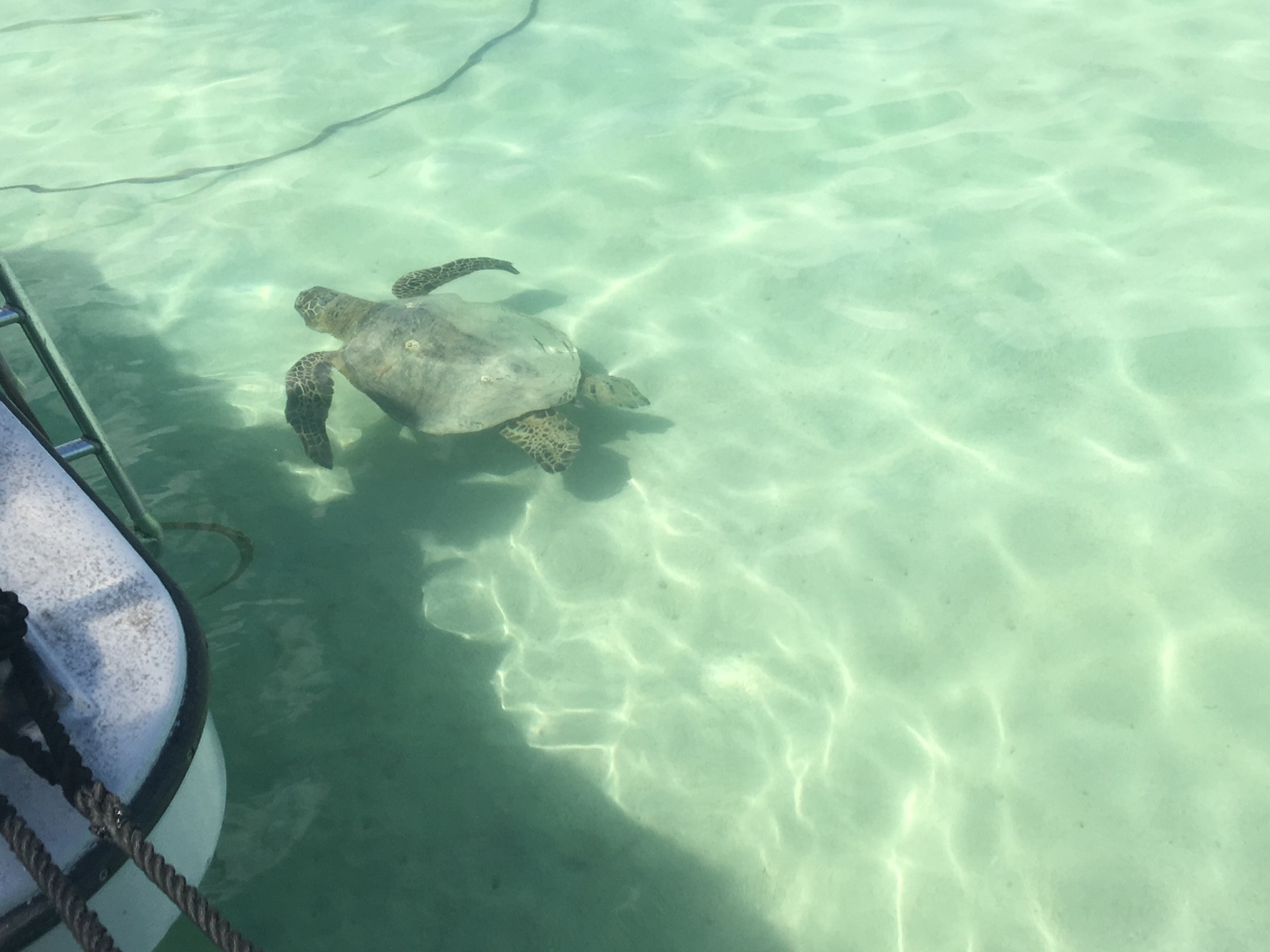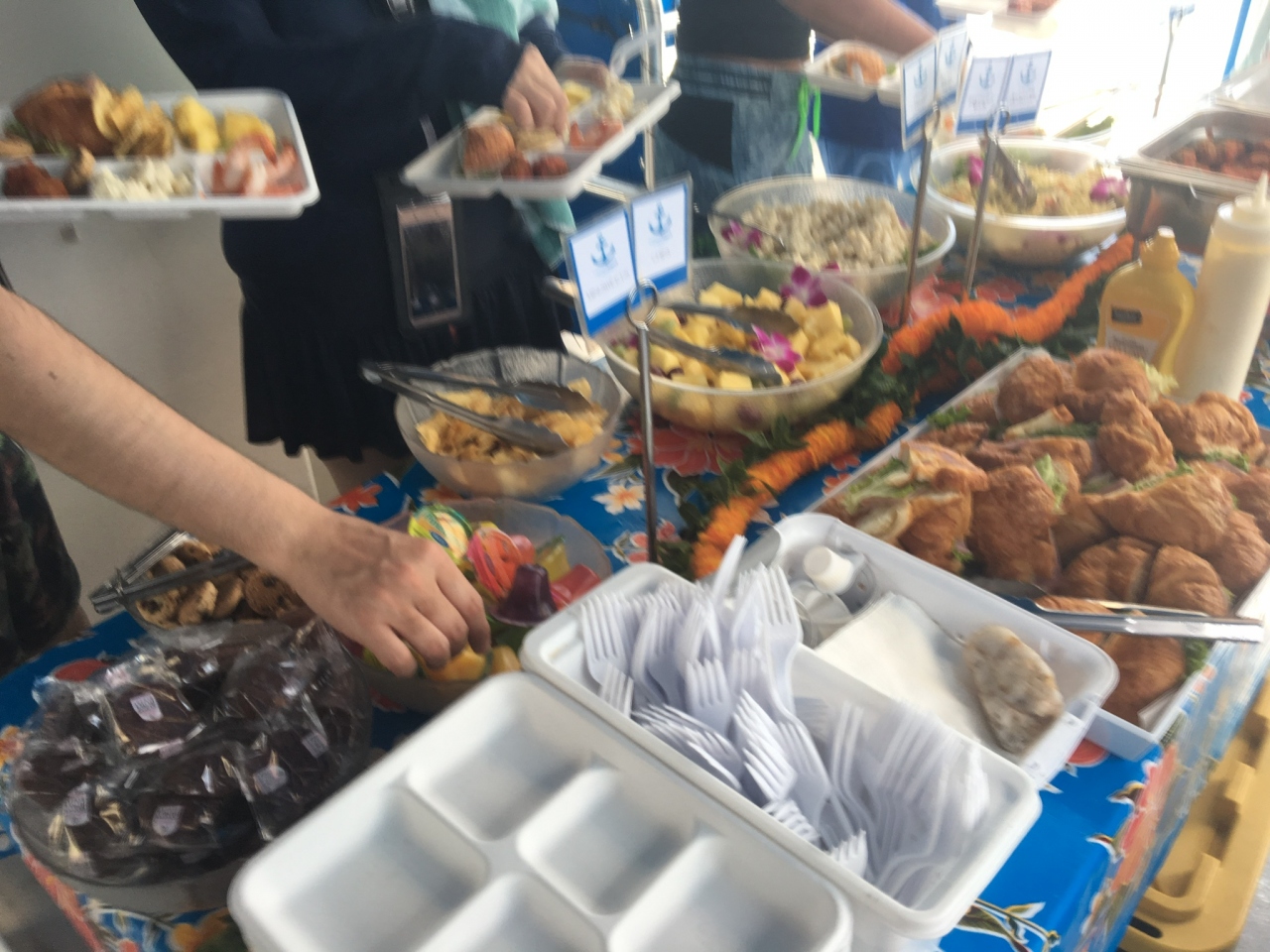 3ヶ月前に日本で予約しました。午前と午後のツアーがあります。インターネットでハワイの潮位を調べて干潮時間に合わせて予約してください。私が行った時は10時少し前が干潮のピークで少しずつ潮が満ちてサンドバーについた時はくるぶしぐらいでした。2隻のボートに分かれたので、サンドバーを楽しんだ後は、ボートごとに先にシュノーケリングチームと食事をするに分かれます。ビュッフェ形式の食事をしていると、ホヌがボートのそばまで寄ってきました。