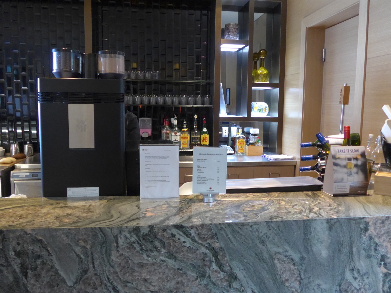 航空各社の共有ラウンジで中に入るとJAL専用のプレミアムラウンジが案内板がありました。料理カウンターの種類はそれほど多くありません