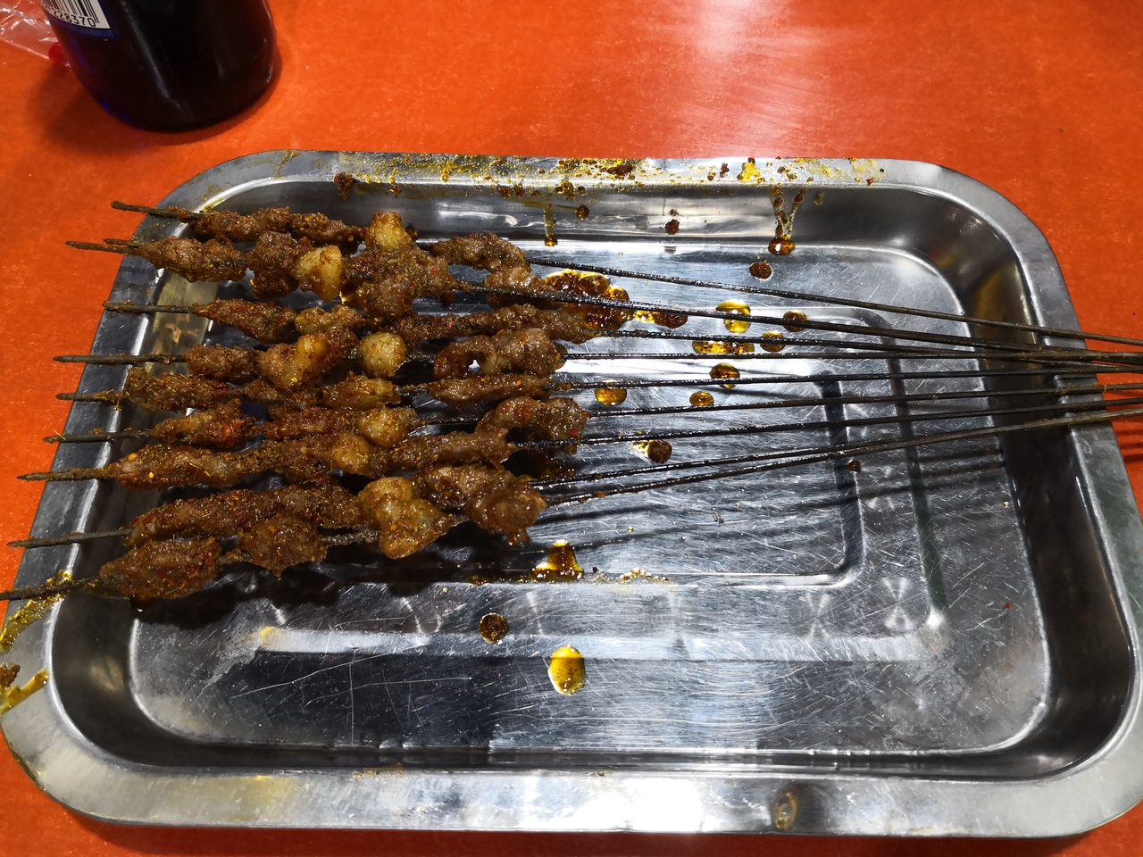 敦煌に来たら是非食べたいのがシシカバブ、羊の串焼き、奥に行くとお店がずらりと並んでいます。