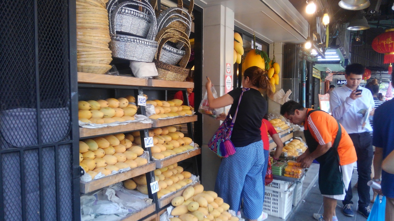 BTSトンロー駅から直ぐに場所にあるマンゴー専門店で店先にはマンゴが並んでいます。