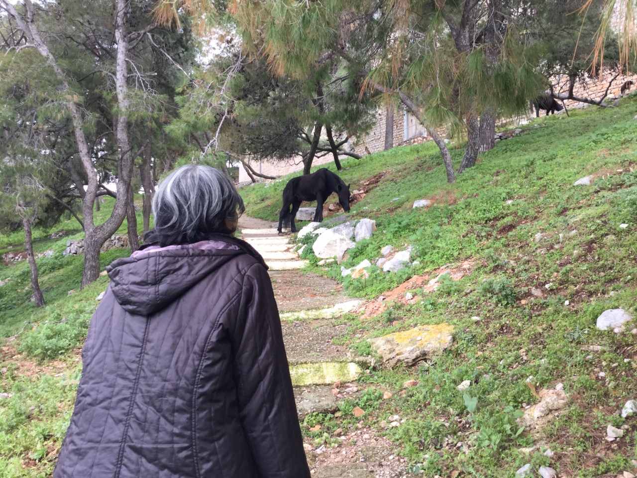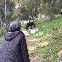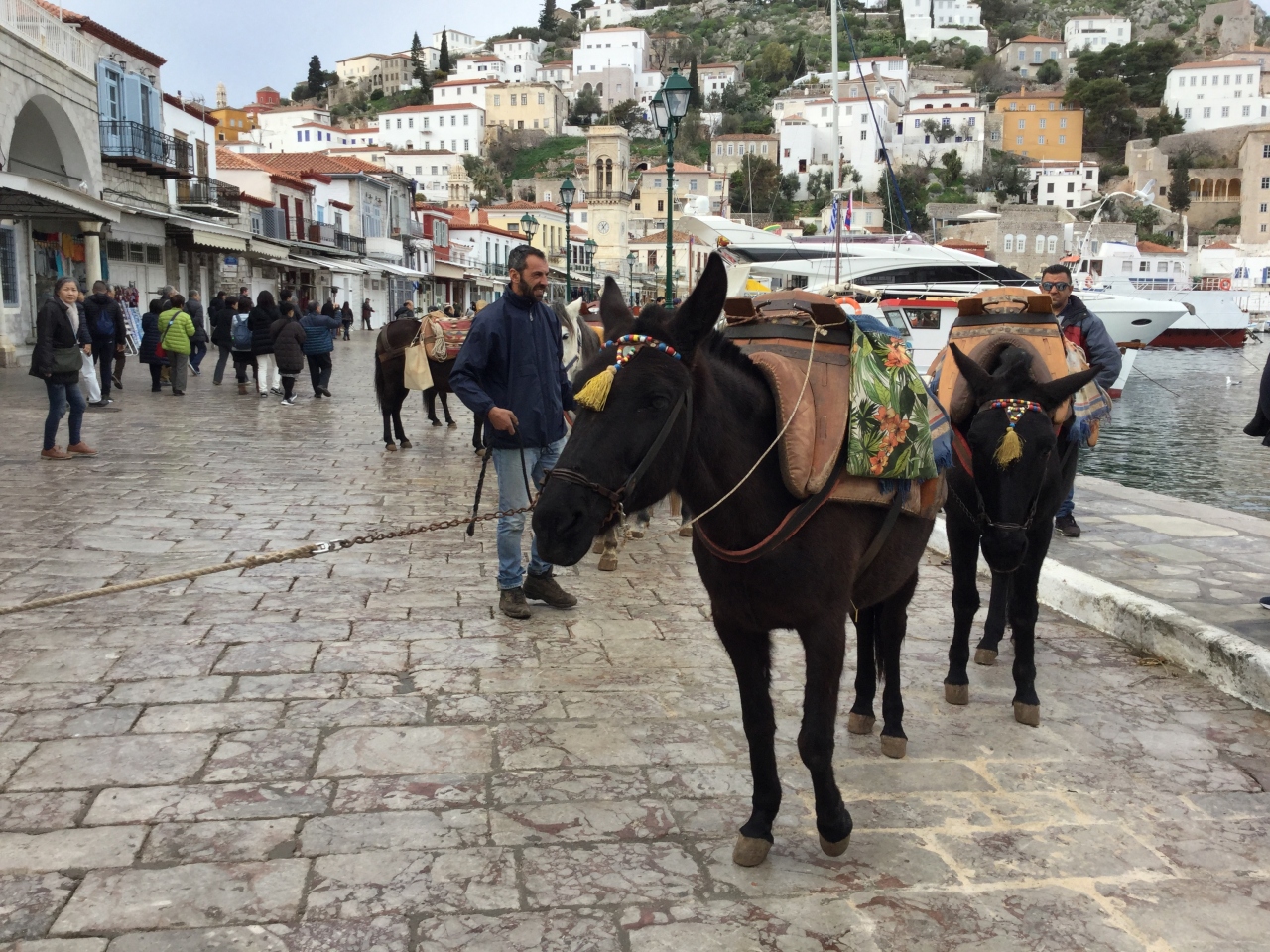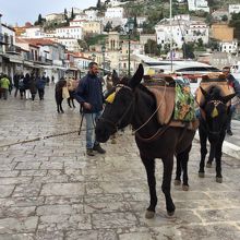 港を歩いて行くとロバが待っていました。