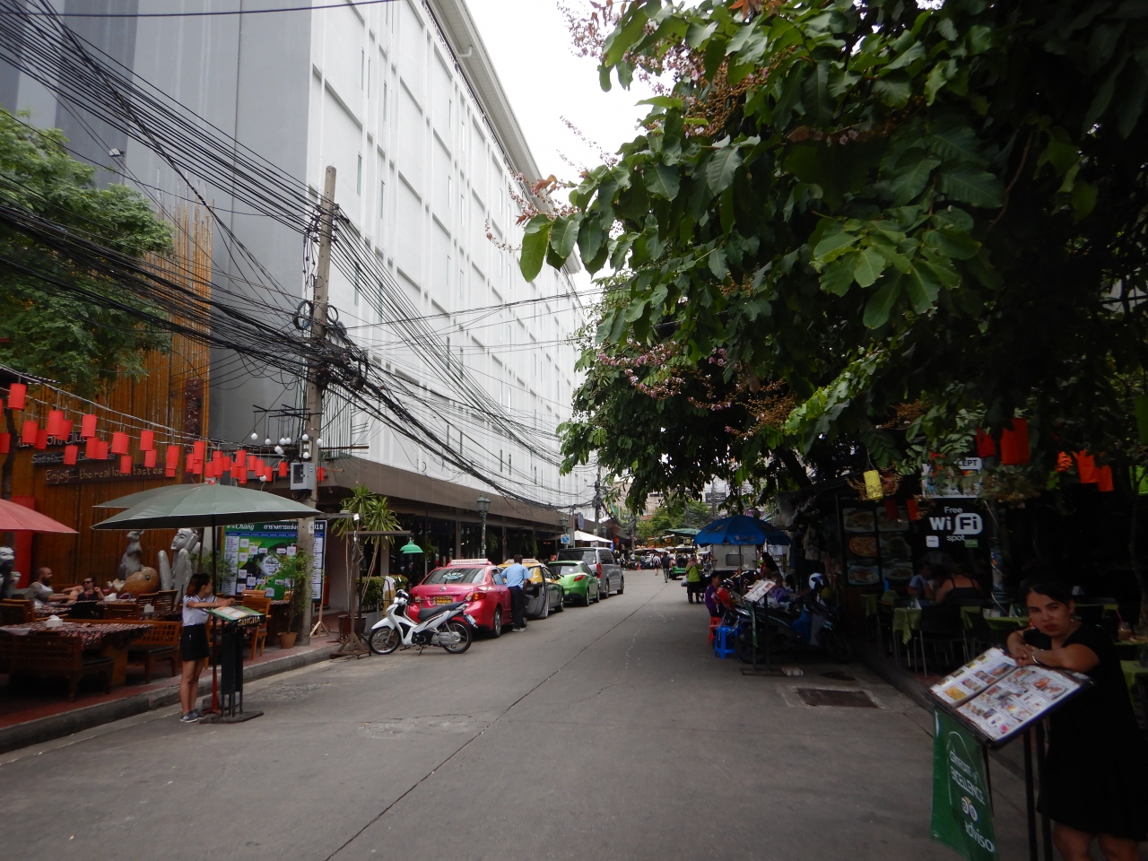 この通りは夜食事をしたりビールを飲んだりとよく来る。この日は昼間に通ってみた。火事の被害に遭ったマジックタイフードが再開していることが確認できたのはよかった。また、新装なったヴィエンタイホテルのその向かいのグリーンハウスを見た。ここには2018年の11月に宿泊している。