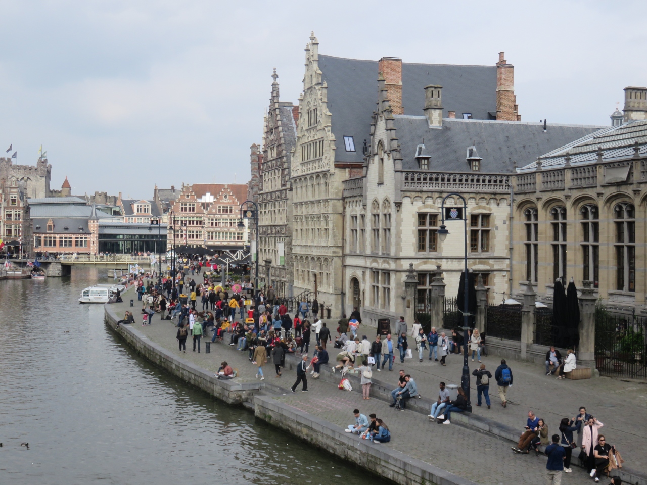 ゲントの街も運河の街並みも、ブルージュだけでなくとても奇麗で印象的でした。ゲントの運河は街の中心部を流れる大きなレイエ川の両岸にグラスレイとコーレンレイと言うエリアがありました。かつては港だったエリアには、ロマネスク様式などの建物が建ち並んで壮麗な景色を眺められました。