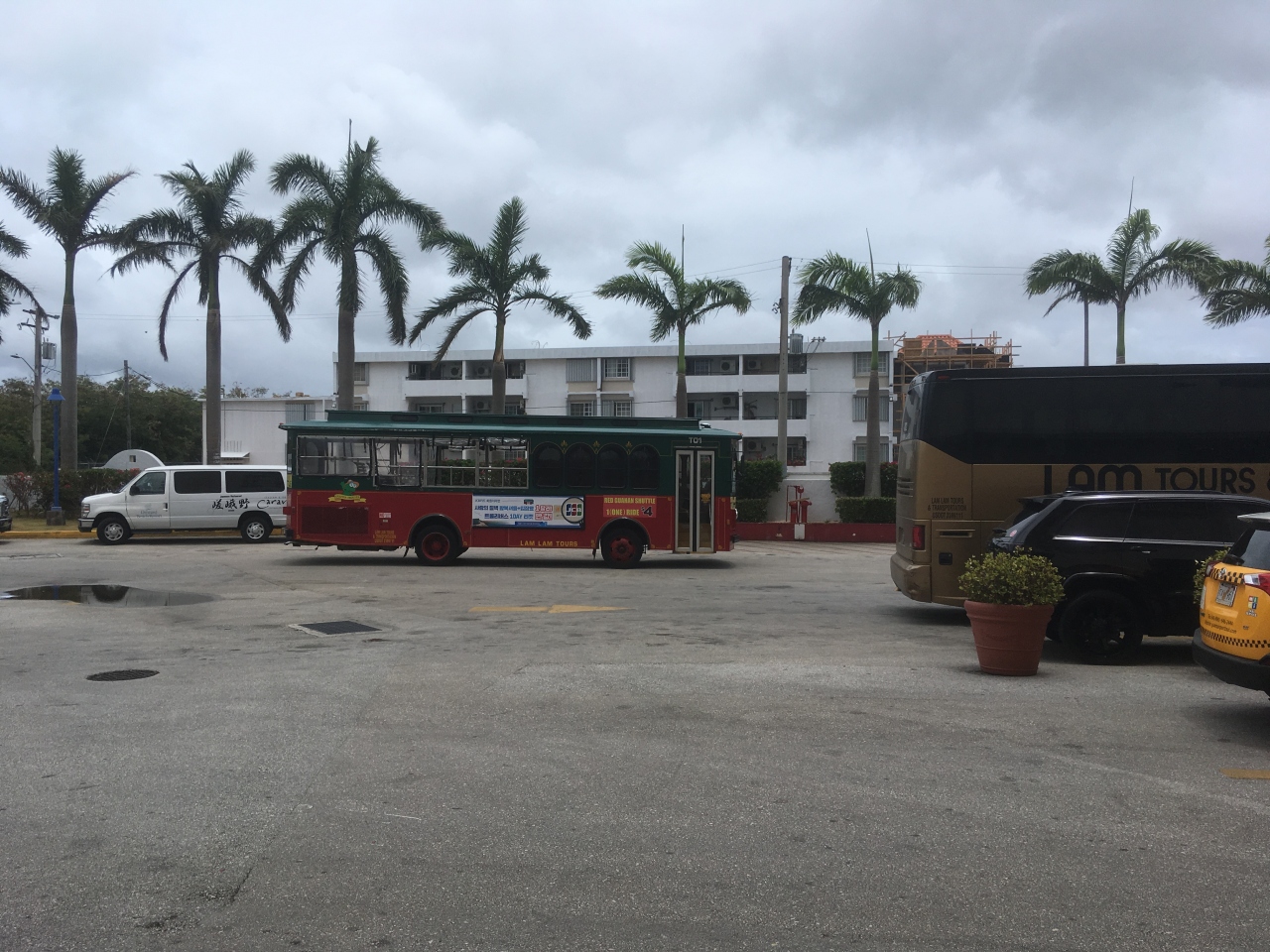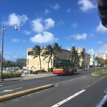グアムを走るバスで、主要ホテルやショッピングセンターを巡回しています。1回4ドルで乗車できます。人数にも寄りますが、タクシーよりは安い印象です。グアムの景色を楽しみながら移動できる点はよかったです。私は、滞在中ホテルを移動しましたが、スーツケース2個を持っていても乗車させてもらえました。