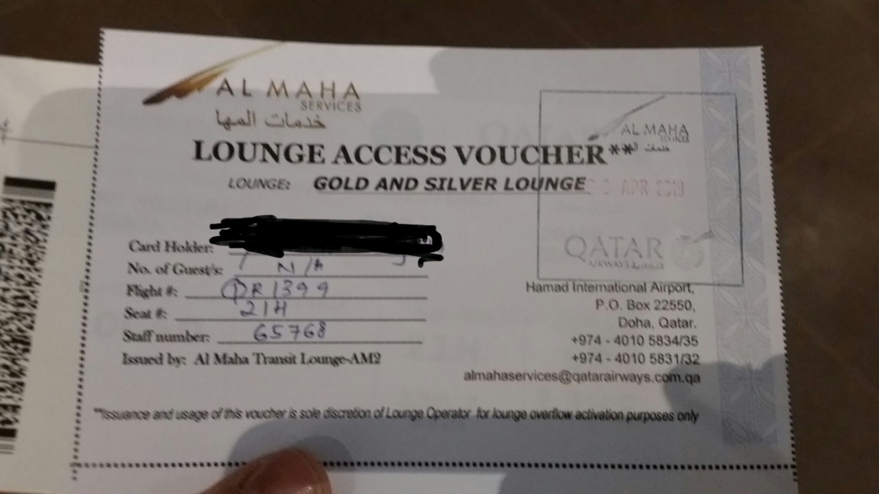 プライオリティカードが使えるドーハ空港のラウンジです。搭乗口A1のそばのラウンジへ行くと、満員とのことで、ビジネスラウンジが使えるカードを発行してくれました。そこは軽食、飲み物、シャワー室と仮眠室などがあり、トランジットで長時間でも利用できる快適なラウンジです。
