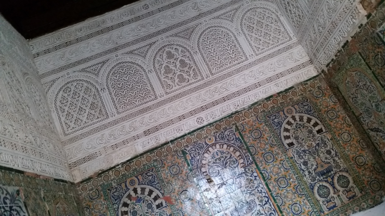 ツアーで訪問しました。シディ=聖 サハブ=友人という意味で、預言者ムハンマドの友人アブ・ザマエル・ヴェラウィが埋葬されています。ムハンマドの床屋だったらしいです。白い漆喰の透かし彫りとアンダルース様式のタイルが、大変美しいです。
