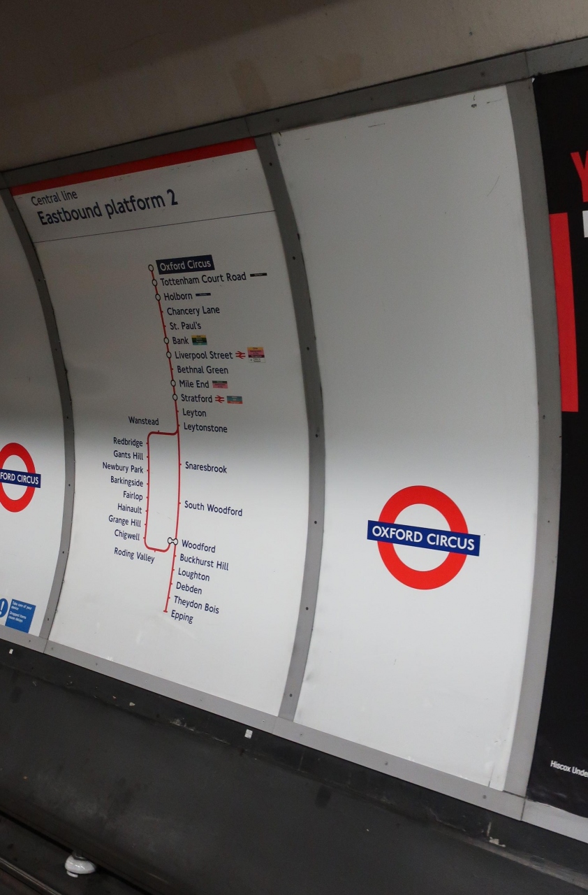 オックスフォード通りで買物する時も、リージェント通りで買物をする時も、両方の通りが交差する場所にある地下鉄の駅で、どちらの通りを利用する場合にも重要な駅になります。特にオックスフォード通りの東西の中央になるので、行きたいお店の場所によっては何度も乗り降りすることになります。
