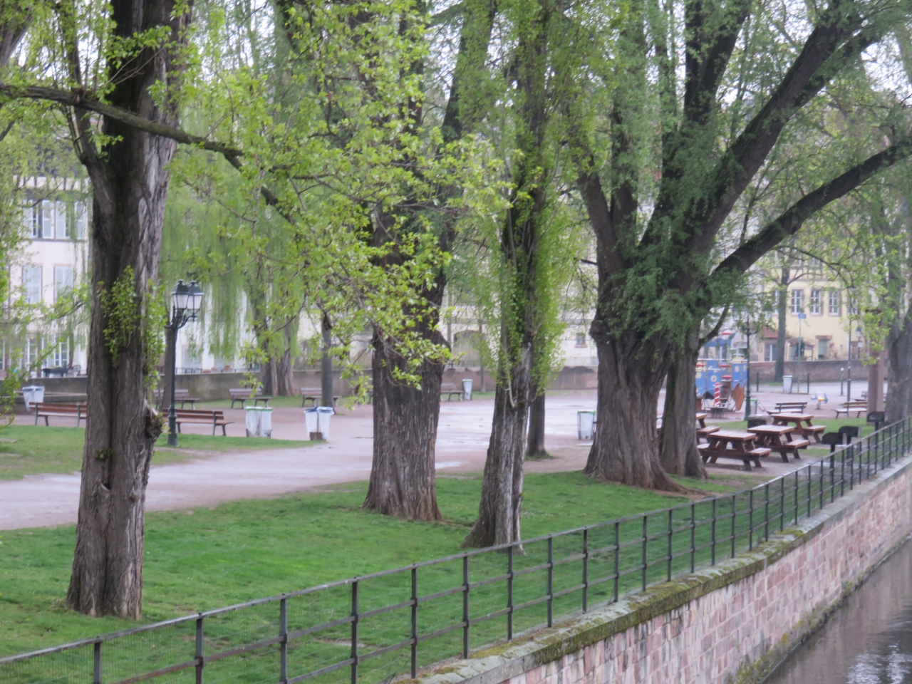 フランスのジャーナリストであり作家・平和運動家・女性参政権運動家・政治家といった経歴を持った女性の名を冠した公園がありました。イル川の中州にある縦に長い公園で、雨上がりのせいか訪れている人も見かけませんでした。付近の景色を楽しみながら散策するには良い公園だと感じました。