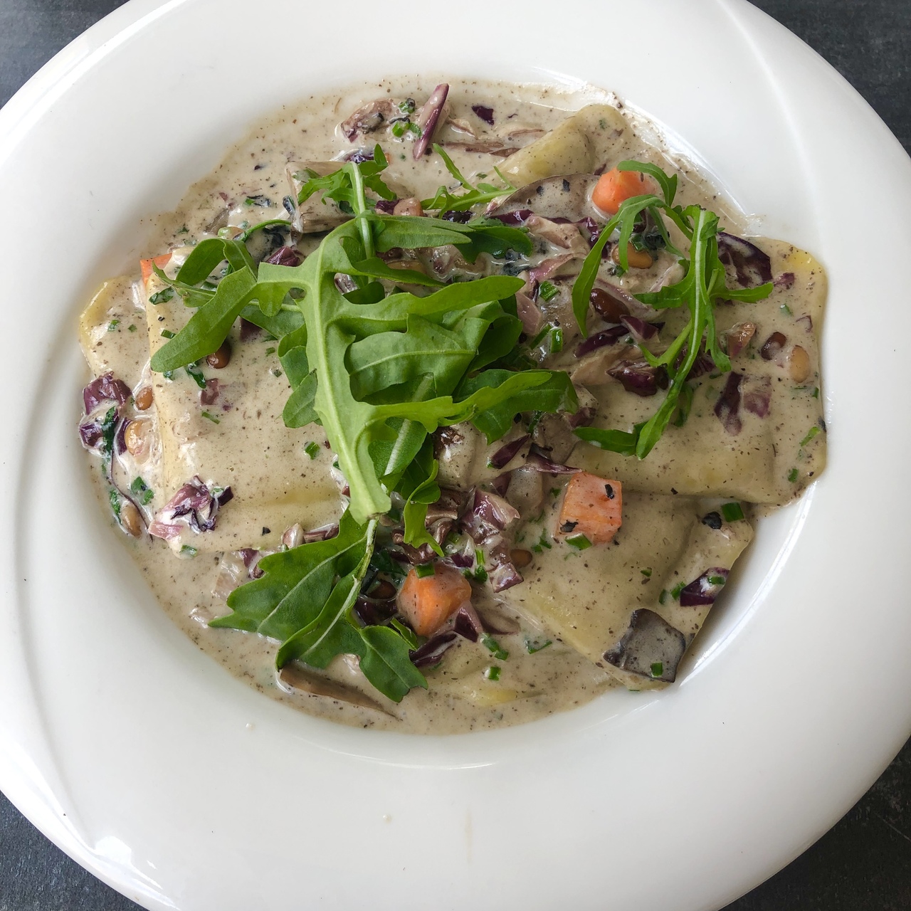 パスタの生地の中にお肉が入っていてとても凝ったメニューでした。