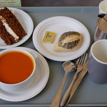 本日のスープ、キャロットケーキ、紅茶をいただき、£11.95でした。