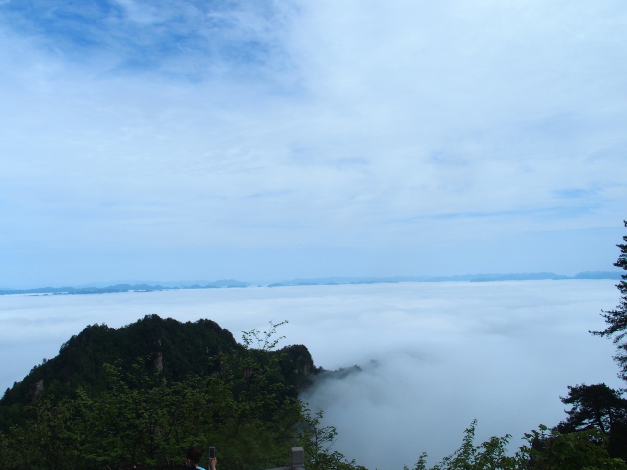 天子山ロープウェイをおりてすぐ。目の前に張家界の絶景が広がります。映画アバターの世界を体感できる、山水画のような奇岩が林立する様は絶景です。運が良いことに、ちょうど雲海を見ることができ、幻想的な風景に感激しました。