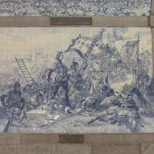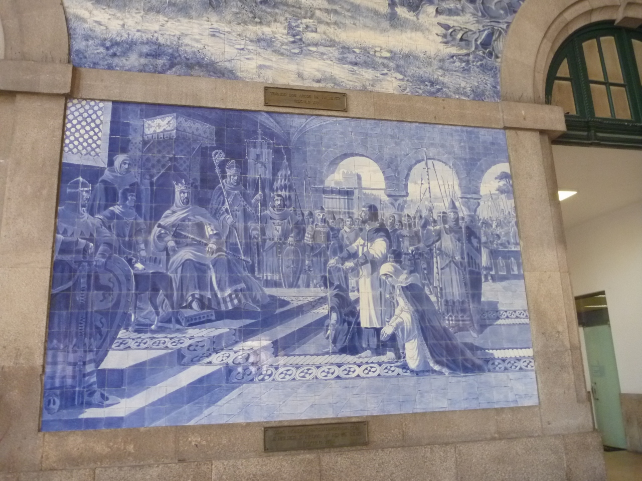 この駅のアズレージョは、事前の下調べですご~く楽しみにしていたので、思いっきり堪能しました。 この駅舎は、もともとは修道院だったそうで、有名なアズレージョは、セウタ攻略時のエンリケ王子、ジョアン1世のポルト入場などだそうです。