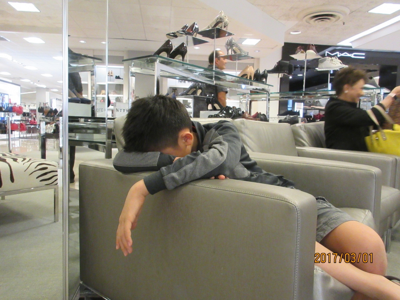 アラモアナショッピングセンターにあるアメリカ資本のデパートメントストアであるメイシーズでのお買い物。女性陣は元気ですが、買うものがない男の子にはつらいところです。カード特典のクーポンがありますが、ブランド品には使用不可です。