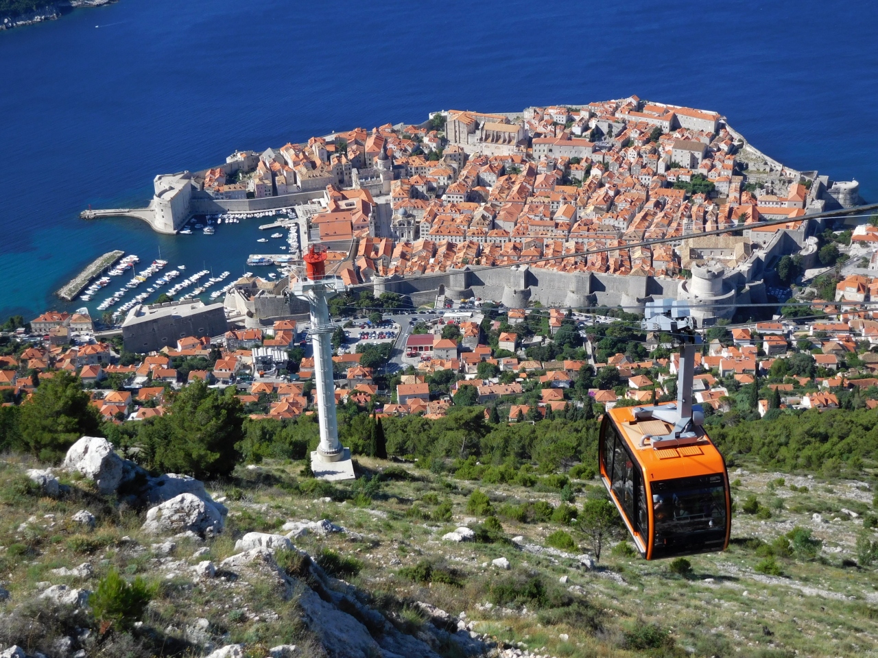 市外からスルジ山山頂までは5分で上がれます。車窓から小さくなる市街地を楽しめます。
