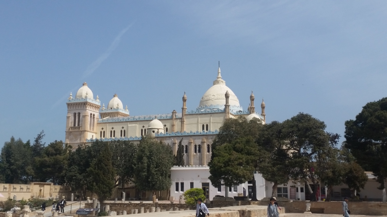 ツアーで前を通りました。ビュルカの丘のカルタゴ遺跡の中心にあります。遠くの商業港・軍港跡からも、丘の上に立つここが見えました。白いドームが素敵です。礼拝堂が1840年に建てられ、現在の大聖堂は1890年にフランスによって建てられました。