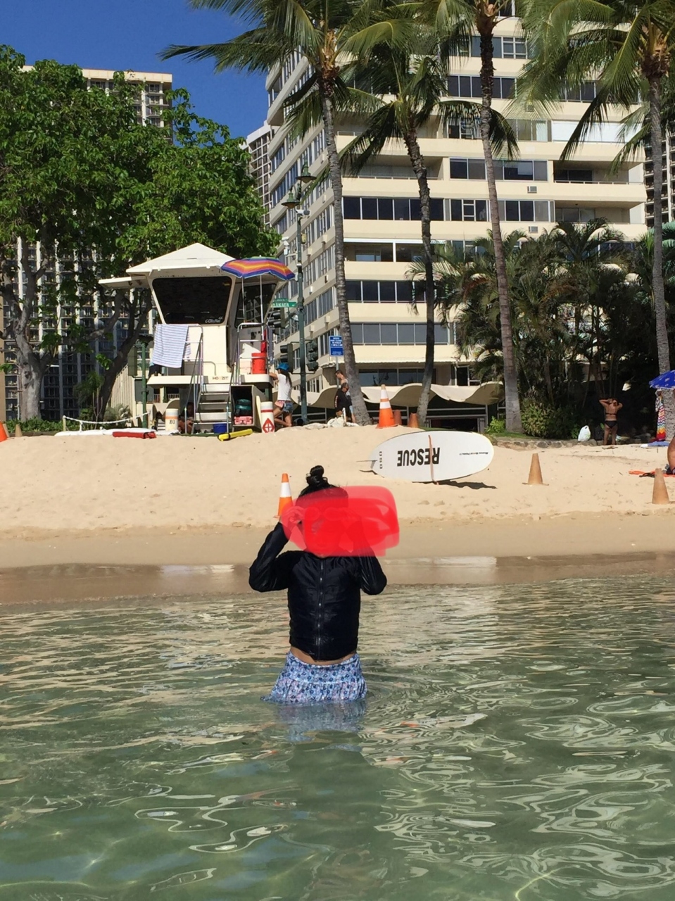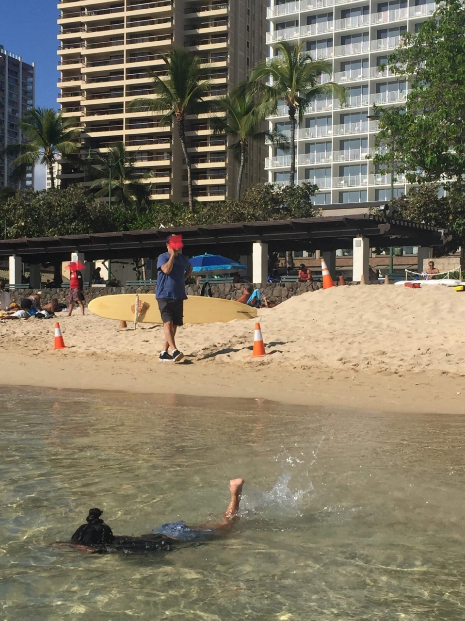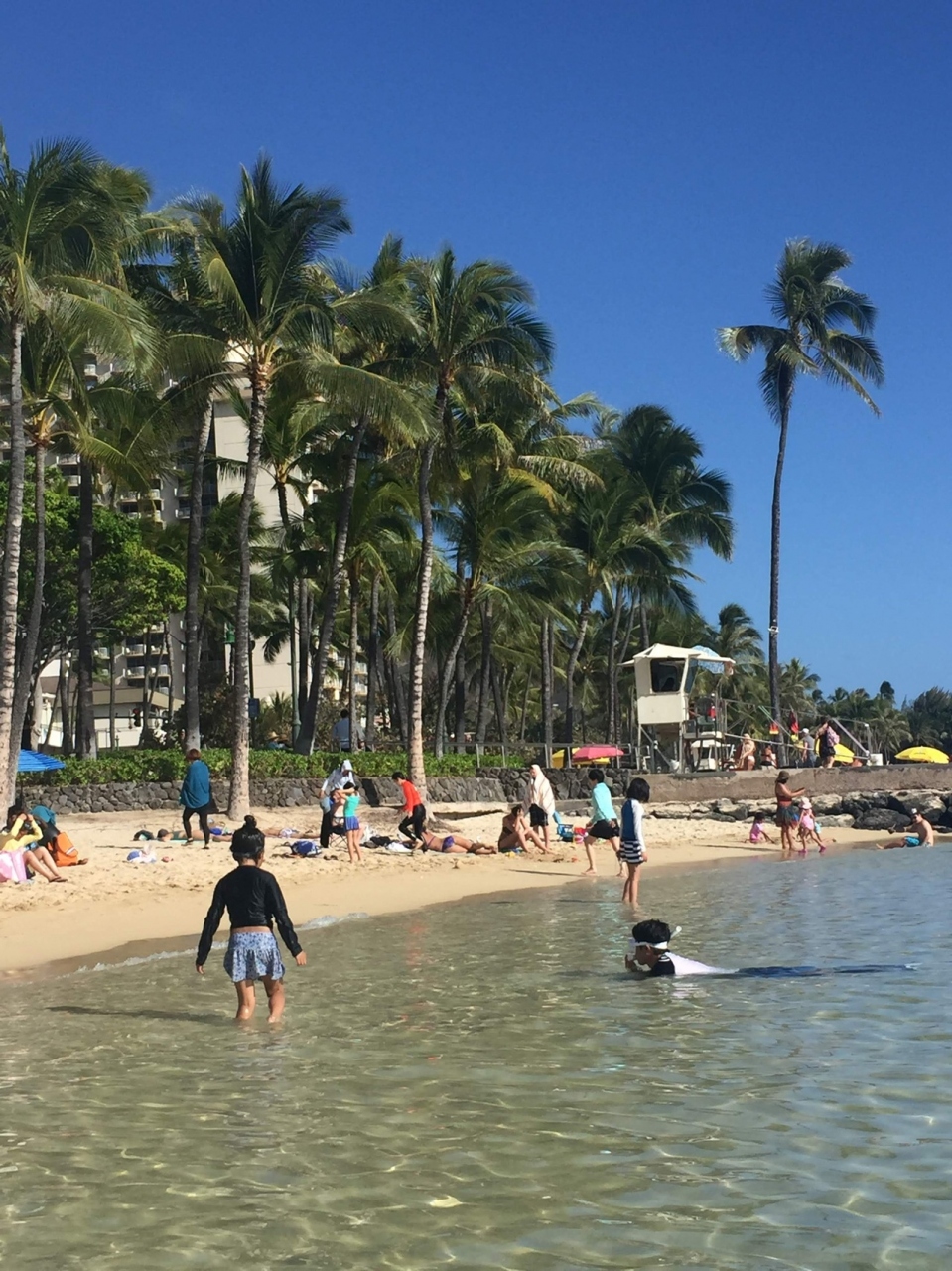 こちらのビーチは、ワイキキマリオットやアストンワイキキビーチホテルの前で、防波堤があるし波が穏やかで小さな子供でも安心して遊ぶことが出来ました。それに小さな魚が沢山泳いでるので、魚を一生懸命に捕まえようとしてましたが、中々捕まえれなく最後は一緒に泳ぐと言って楽しそうにしてました。中々オススメのビーチです。