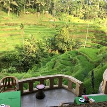 この店で一番ゆったりと出来ると思います。ヤシの木と田んぼ、まさにバリ島の風景です。