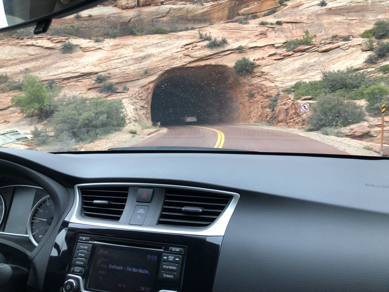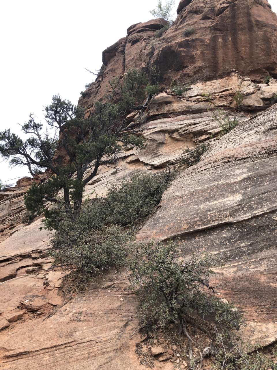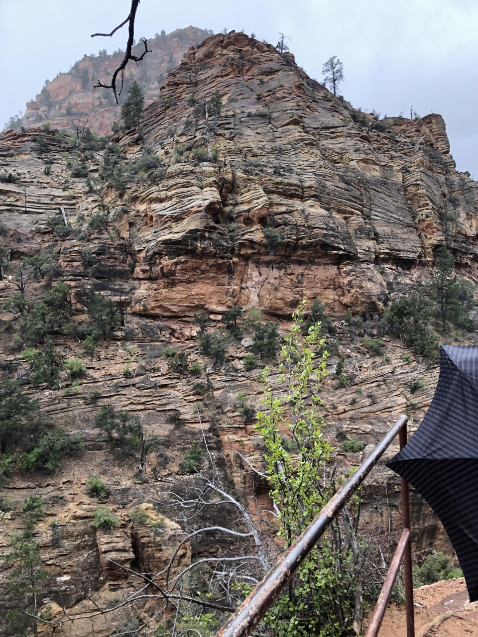 しかし、行った日は雨、大変急なトレイルロードなので途中で断念せざるを得ませんでした。ザイオン国立公園は渓谷なので雨の場合はトレイルロードを歩くのは危険です。