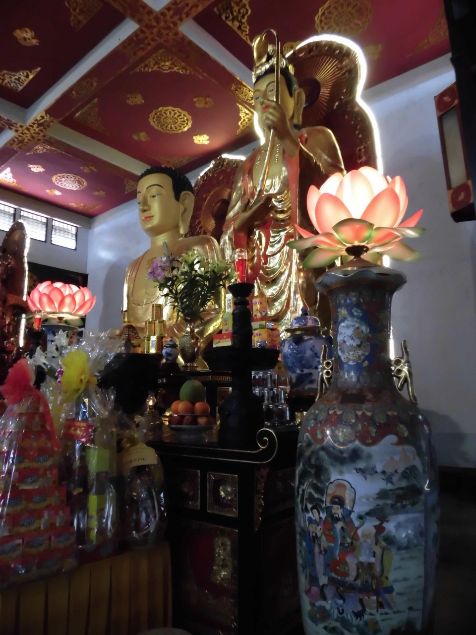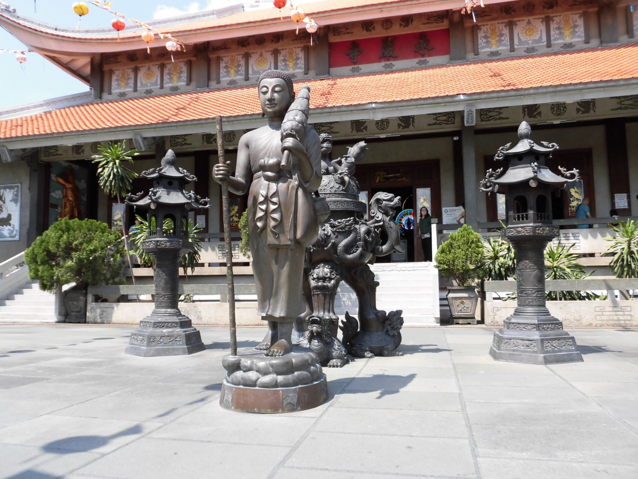 建物自体は1971年建立と新しいですが、大きな仏像など数多くの仏像があり、境内の石段上の右側には日本とベトナムの友好と平和を意味した大きな鐘楼があります。