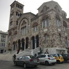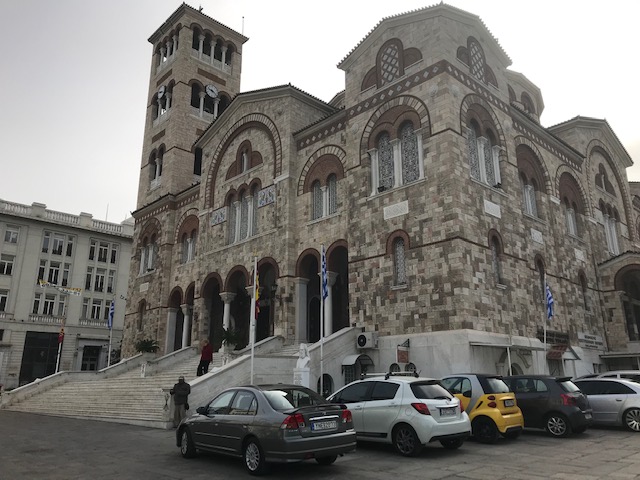ギリシャの港町のピレウスにある大聖堂です。地下鉄のピレウス駅から歩いて10分もかかりませんでした。街の中心部に突然大聖堂が現れました。行ったのが日曜の午前中だったので、ちょうどミサをやっていて、残念ながら教会の中には入れませんでしたが、外観だけでもその荘厳さに圧倒されました。
