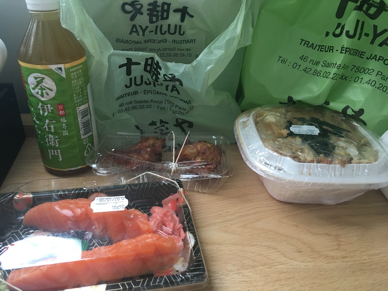 カツ丼とサーモンの刺身と伊右衛門のお茶のペットボトルと唐揚げをテイクアウト。カツ丼はカウンターでご飯をよそってくれます。たまたまだと思いますが、店員さんの一人は日本語が少し通じました。一定額以上でクレジットカードも使えました。