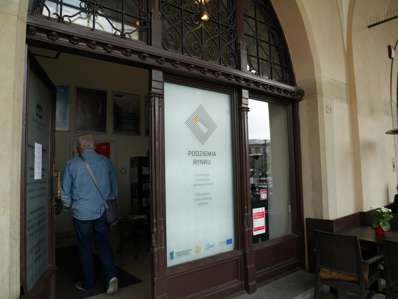 インターネットで事前にチケットの購入もできますが、できなかった場合はクラクフの中央広場の織物会館でもチケットの事前購入が可能です。5/1に行きたかったのですがポーランドでは休日のため開いているのかどうか、織物会館内のツーリストインフォメーションで尋ねた処、開いているけれど事前にチケットを購入したほうがいい、この真裏で売ってるわよと教えてもらいました。そのチケット売り場はカフェのテラス席があり入口が見つけにくかったですが、写真のような入口から入りカウンターで購入できます。しかしながら、翌日5/1のチケットは売り切れで、5/2の10:20が一番早い時間でしたのでそのチケットを購入しました。5/2当日はクラクフ中央駅から3番トラムに乗り、Plac Bohaterow Gettaで下車し歩いて6-7分くらいです。グーグルマップ通りに歩いていけばわかります。当日券売り場は長蛇の列でしたので事前にチケットを購入していて正解でした。リュックサックはロッカーかクロークに預けます。