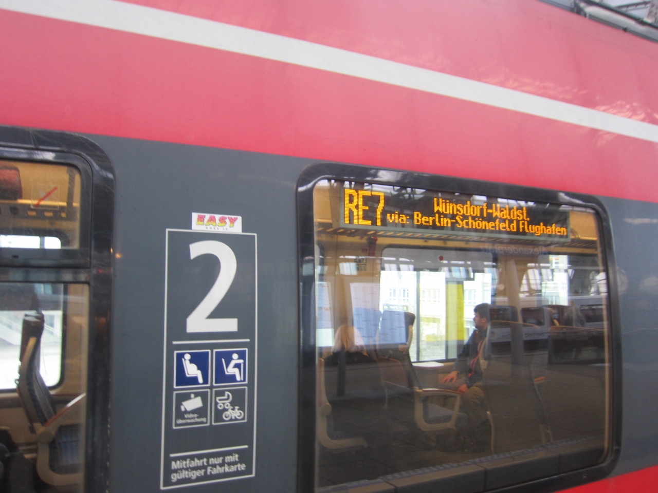 エアポート・エクスプレスを利用しました。エクスプレスと名前についていますが普通車です。30分おきに運行されています。料金はCゾーンなので3.4ユーロでした。スーツケース置き場はありませんでした。私は降りやすいように出入口に近いところに座りました。