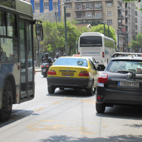 市内の移動には、ガイドさんと一緒に乗りました。ギリシャ人の顔をしたドライバーが安心、だそうです。