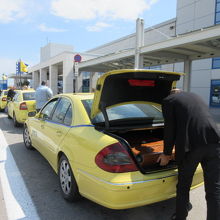 黄色いタクシー。ホテルで空港までの送りをホテル付でお願いしたら、立派な車でした、