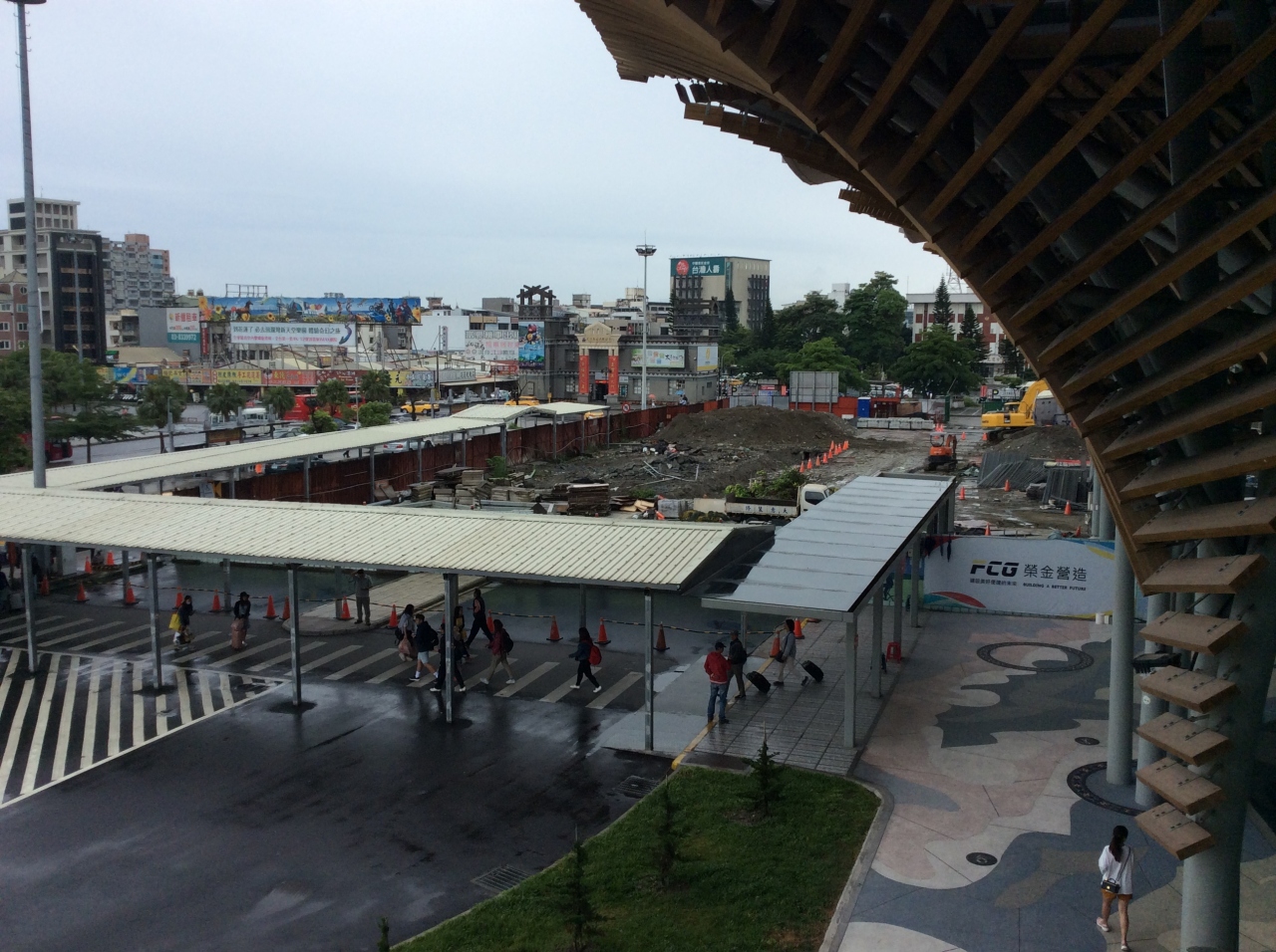 2年前来た時にも、古い駅舎を取り壊しつつ、新しく改築をしていた。今回来てみたらまだ終わってなかった。ただ、出入り口が地上と2階駅舎に出来た。ついでに、この駅に差し掛かると原住民の言葉で「花蓮」の事を「かりんこ」と呼ぶのがわかる。駅前はまだまだ工事が終わってない。